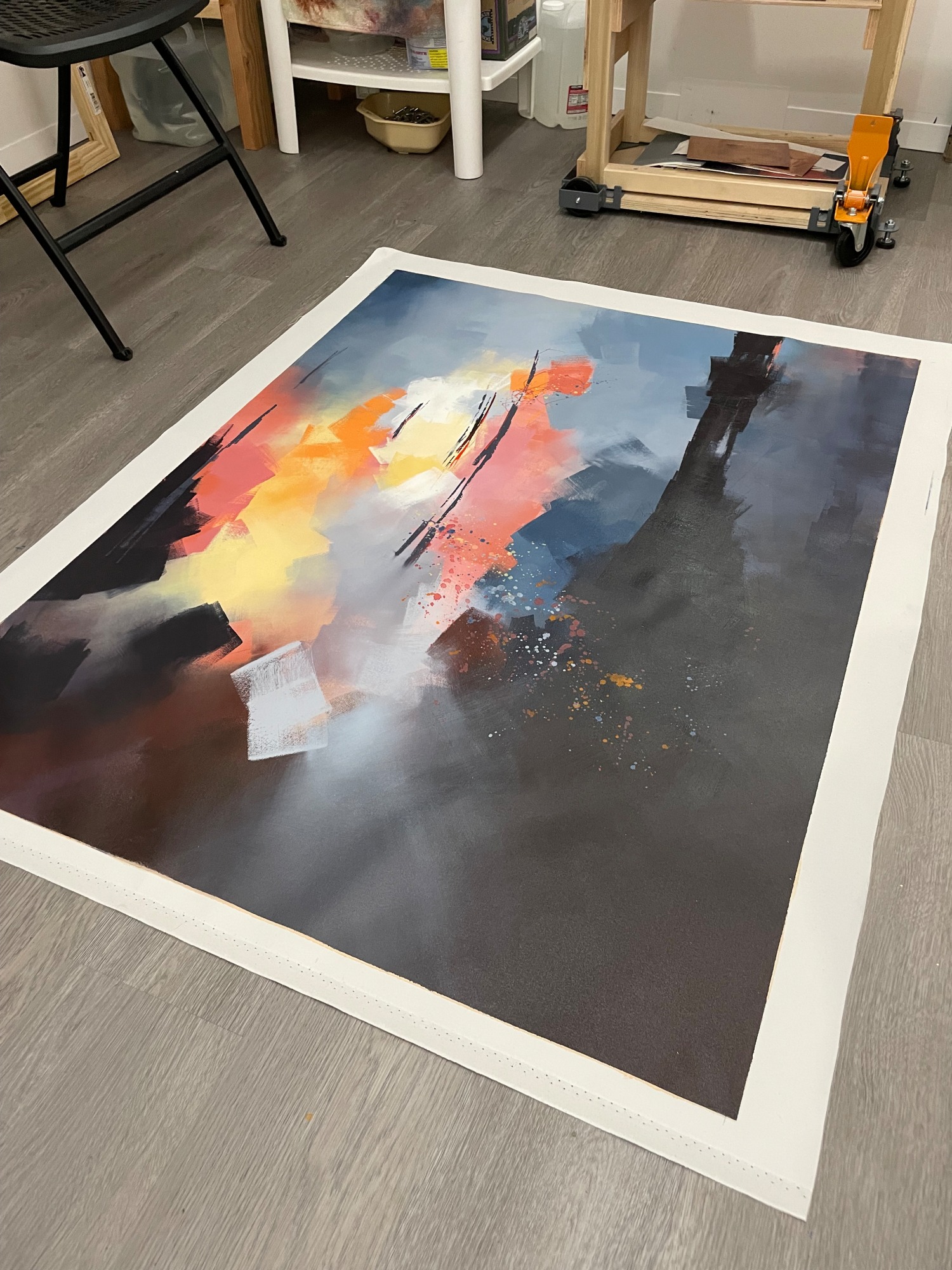 Acrylic and pencil on 36” x 48” gallery canvas.