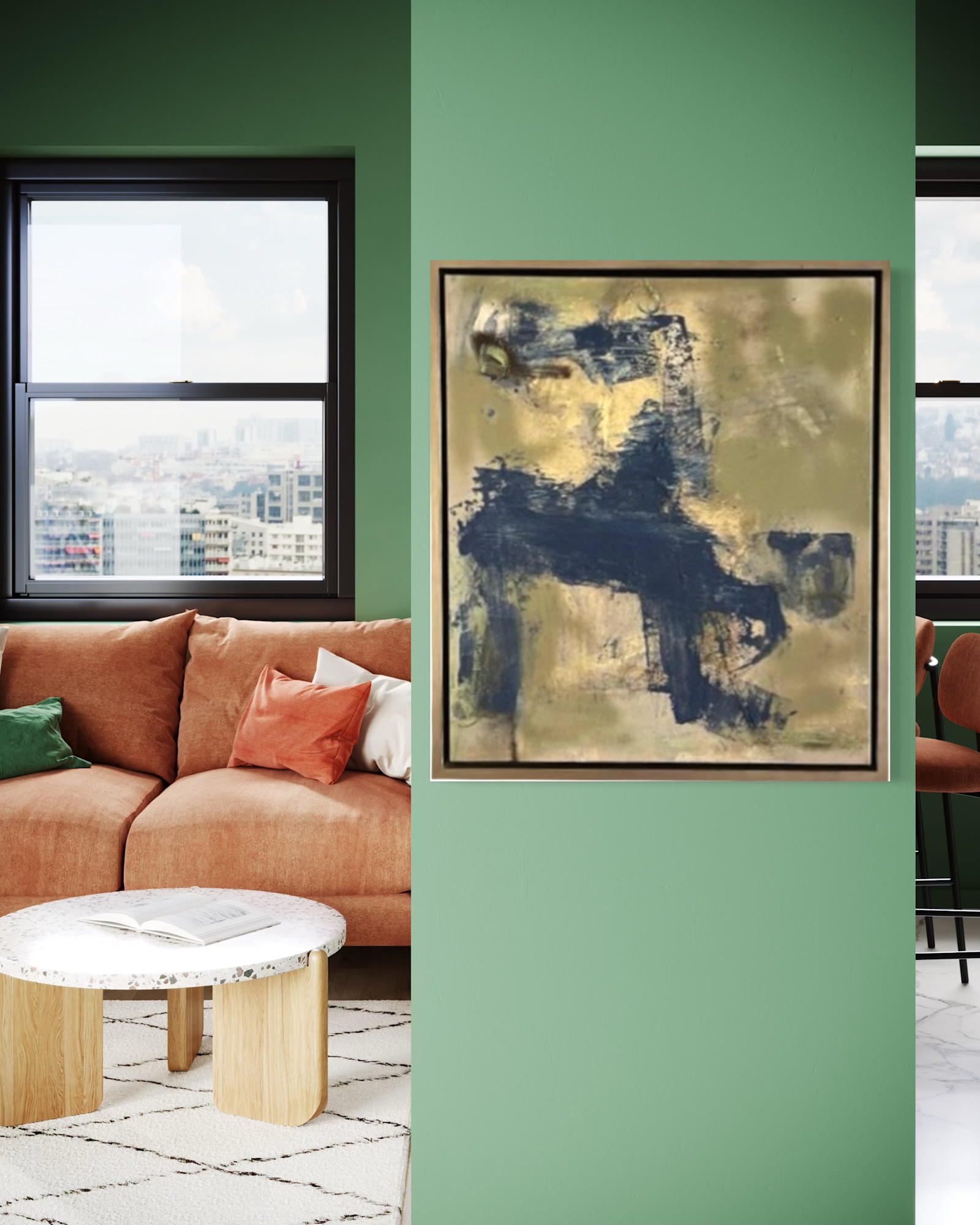 This painting was part of a group of works in a 2019 San Miguel de Allende show. These works focused on textures and shapes. This particular piece has a rather simple format. I worked on this painting from various directions, keeping in mind a Wilhelm DeKooning mantra that a painting should work from all directions. I have adopted this approach over the last 20 years or so. Hence, the final stage of this composition, in blues and grays, only becomes "Crazy Cat" after many twists and turns. It is possible to enjoy this piece from other positions.