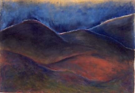 Mountain and hills with blue/yellow sky