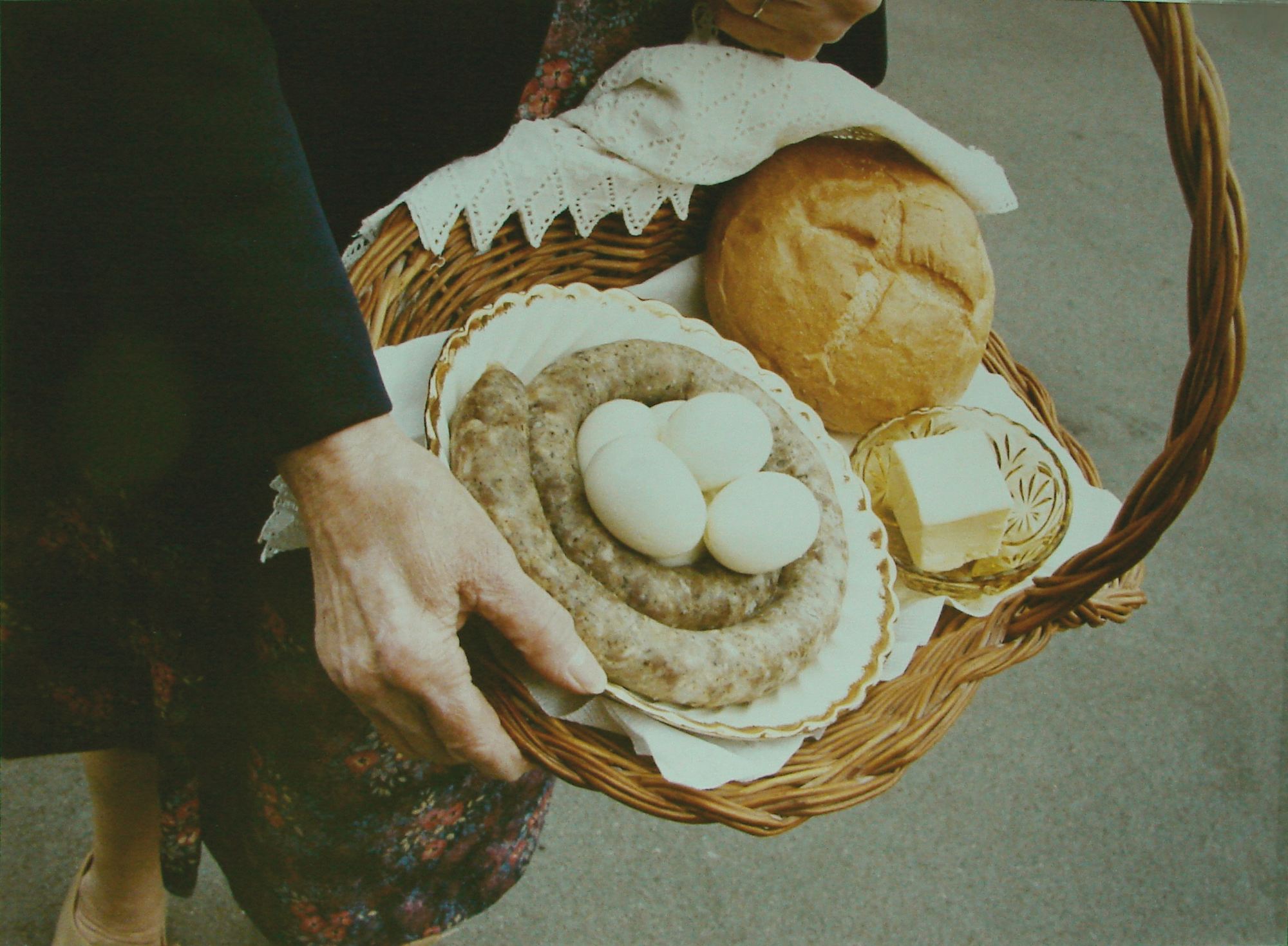 - Swienconka:girl w/basket,blue jacket,pink shirt, 1987