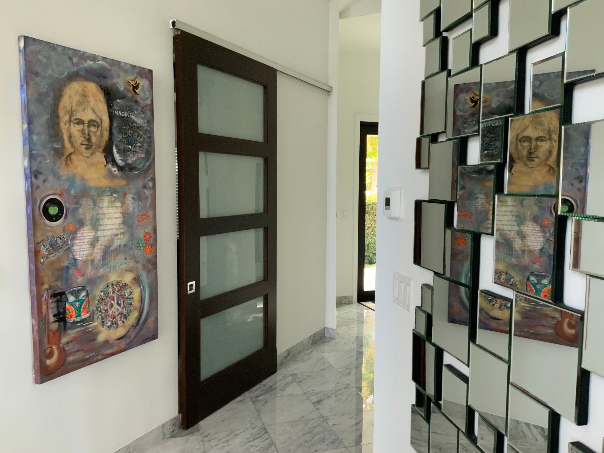 Immerse yourself in the era of peace, love, and music with this exquisite mixed media portrayal of the legendary John Lennon. Capturing the essence of the 60s, this piece intricately combines realism sketching, hand-painted elements, and collage techniques to bring to life the beliefs and visions of one of the most influential artists of our time. The artwork also features a serene mandala with an integrated peace sign, echoing the calls for peace that defined a generation. This is more than just a painting; it’s a journey back in time, a homage to the ideals that shaped a movement. Perfect for art collectors and enthusiasts who appreciate the intertwining of history, music, and art. Indulge in a piece that not only stands as a testament to John Lennon’s legacy but also embodies the spirit of an entire era. Own a piece of history, and let the message of peace and love resonate through your space.