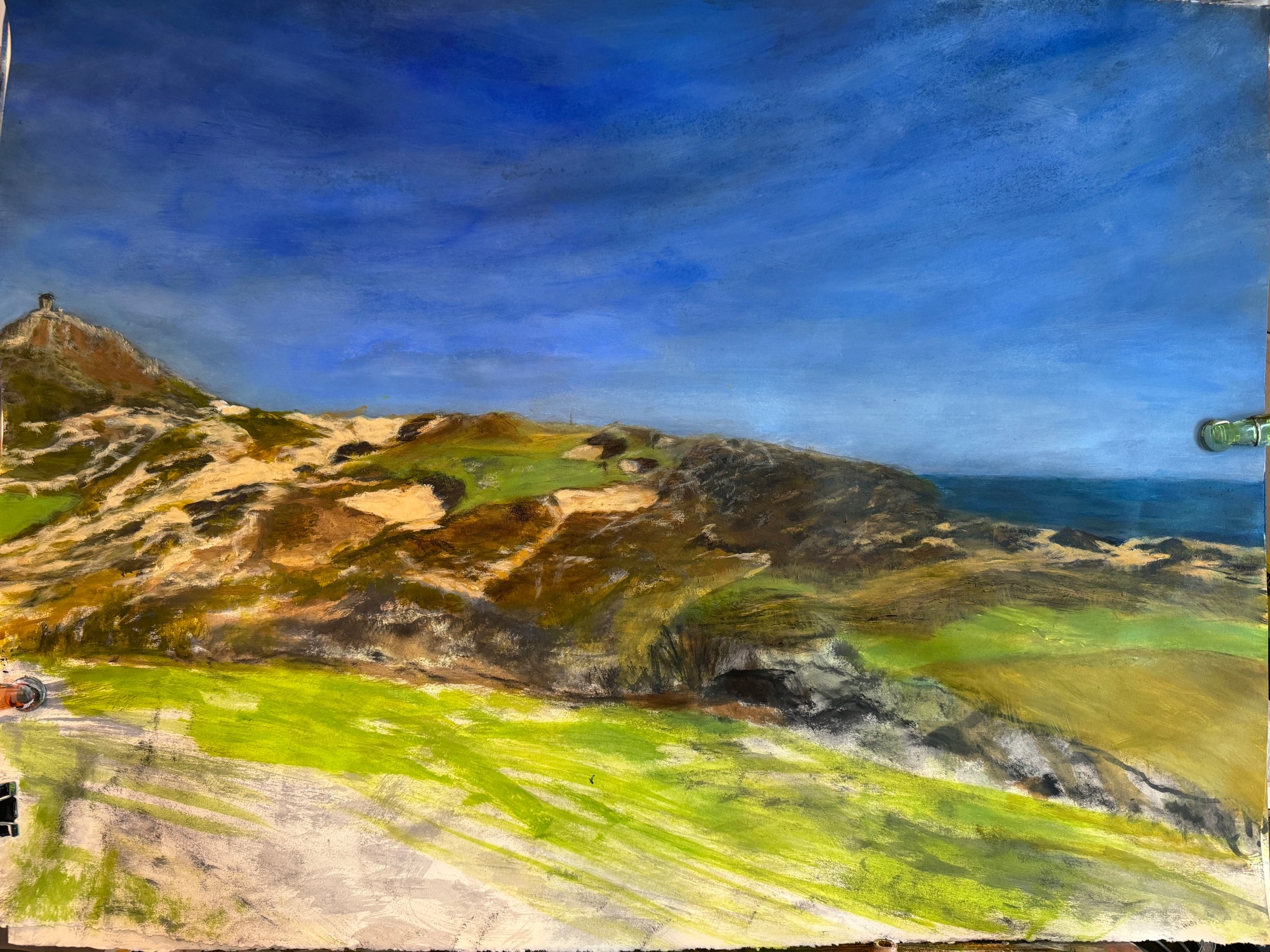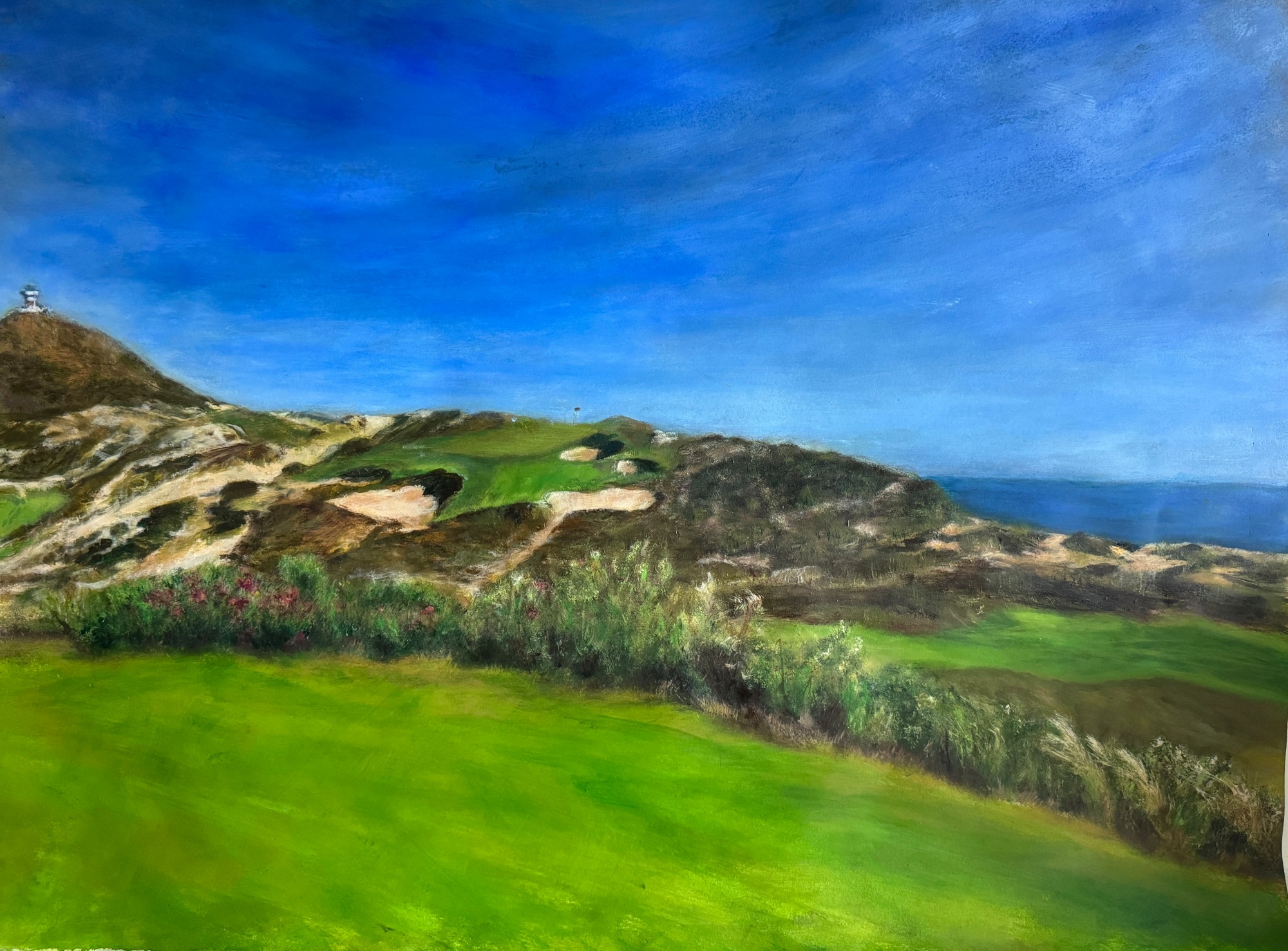 Explore the essence of luxury golf landscapes with ‘The Dunes, Hole 12, at Diamante,’ an exquisite portrayal of one of Cabo San Lucas’s most prestigious golf settings. This artwork encapsulates the breathtaking allure of the Diamante golf resort, renowned for its stunning coastal views and challenging fairways. Each brushstroke reveals the vibrant beauty and dynamic contours of this iconic hole, inviting viewers into a world of refined tranquility and elegance.