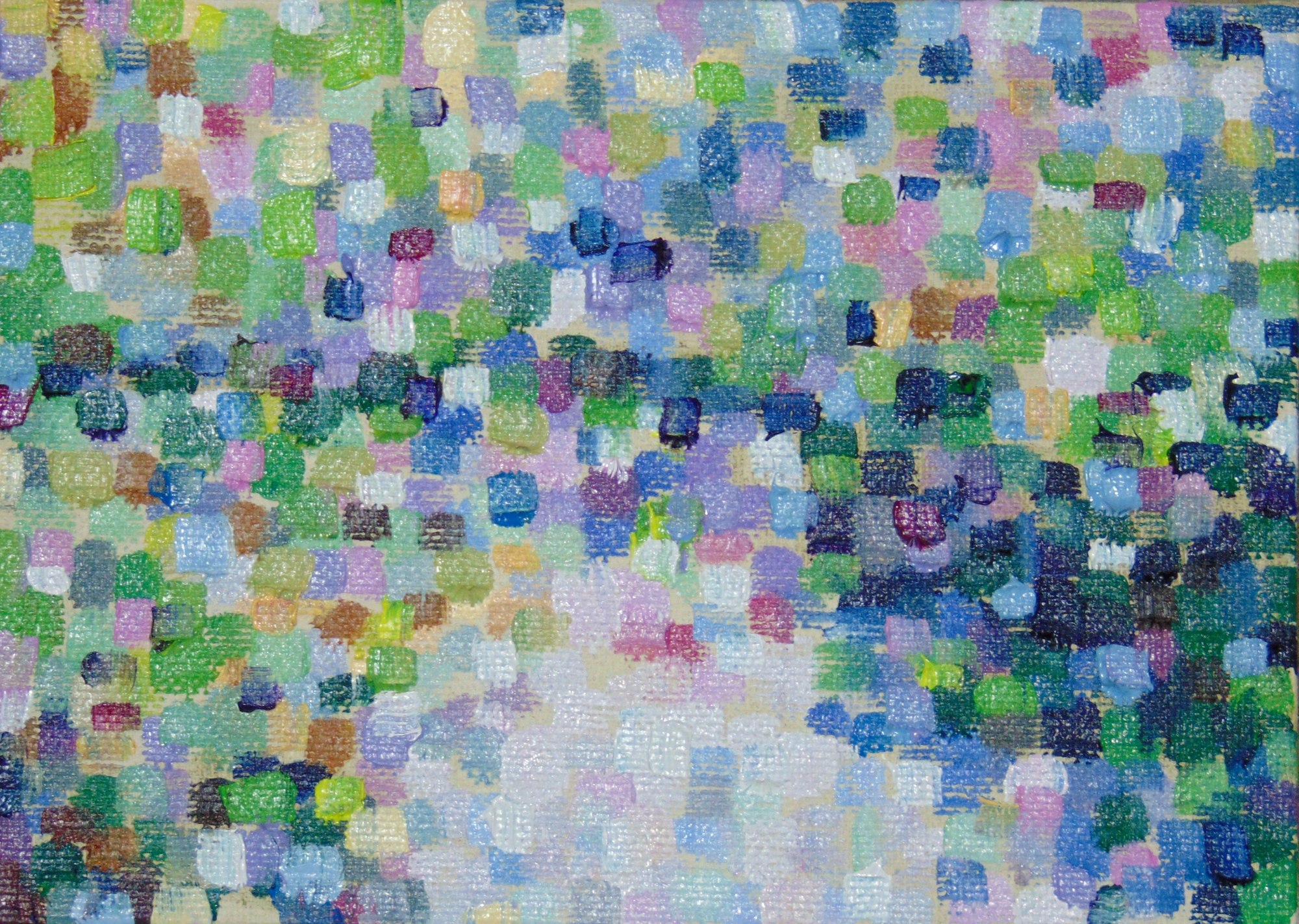 MessageA view of Betts Mill Creek water grasses from the level of a kayak interpreted in small rectangular dots in a higher keyed color arrangement. Awarded Honorable Mention at the RAL Art Center Abstract Exhibition September 2018.