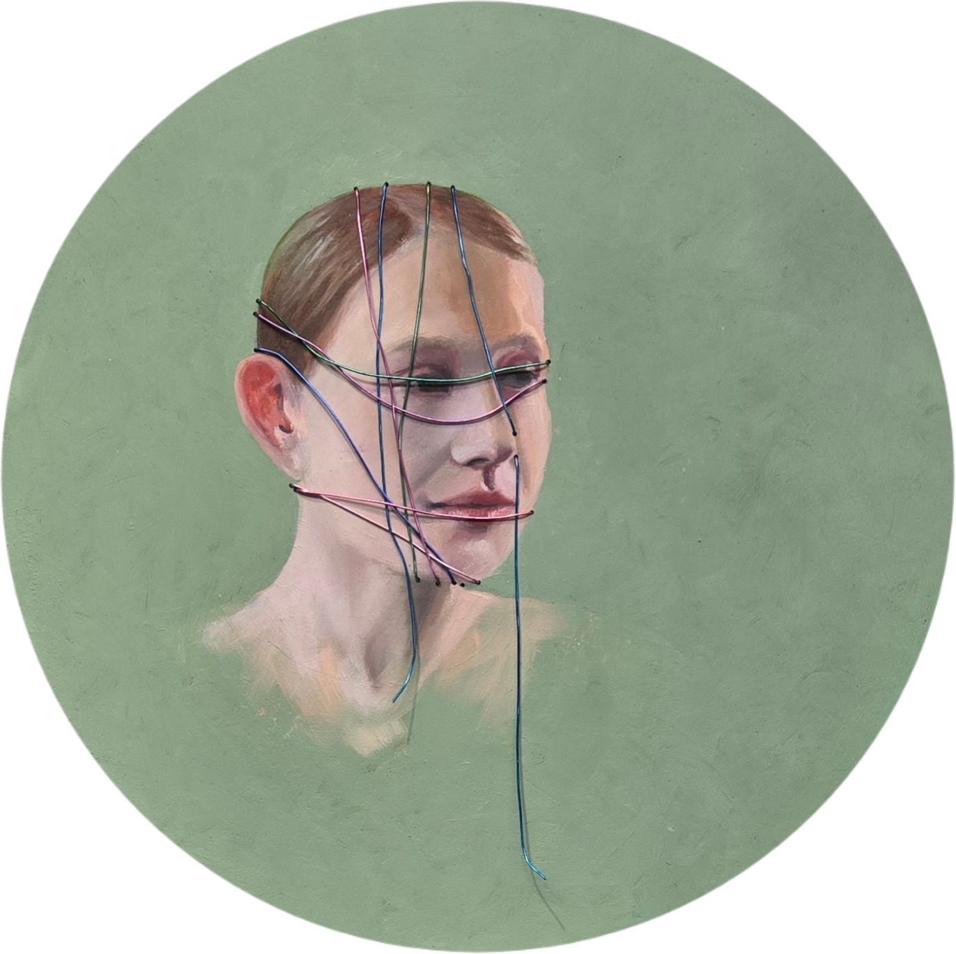 Oil and wire on aluminum panel