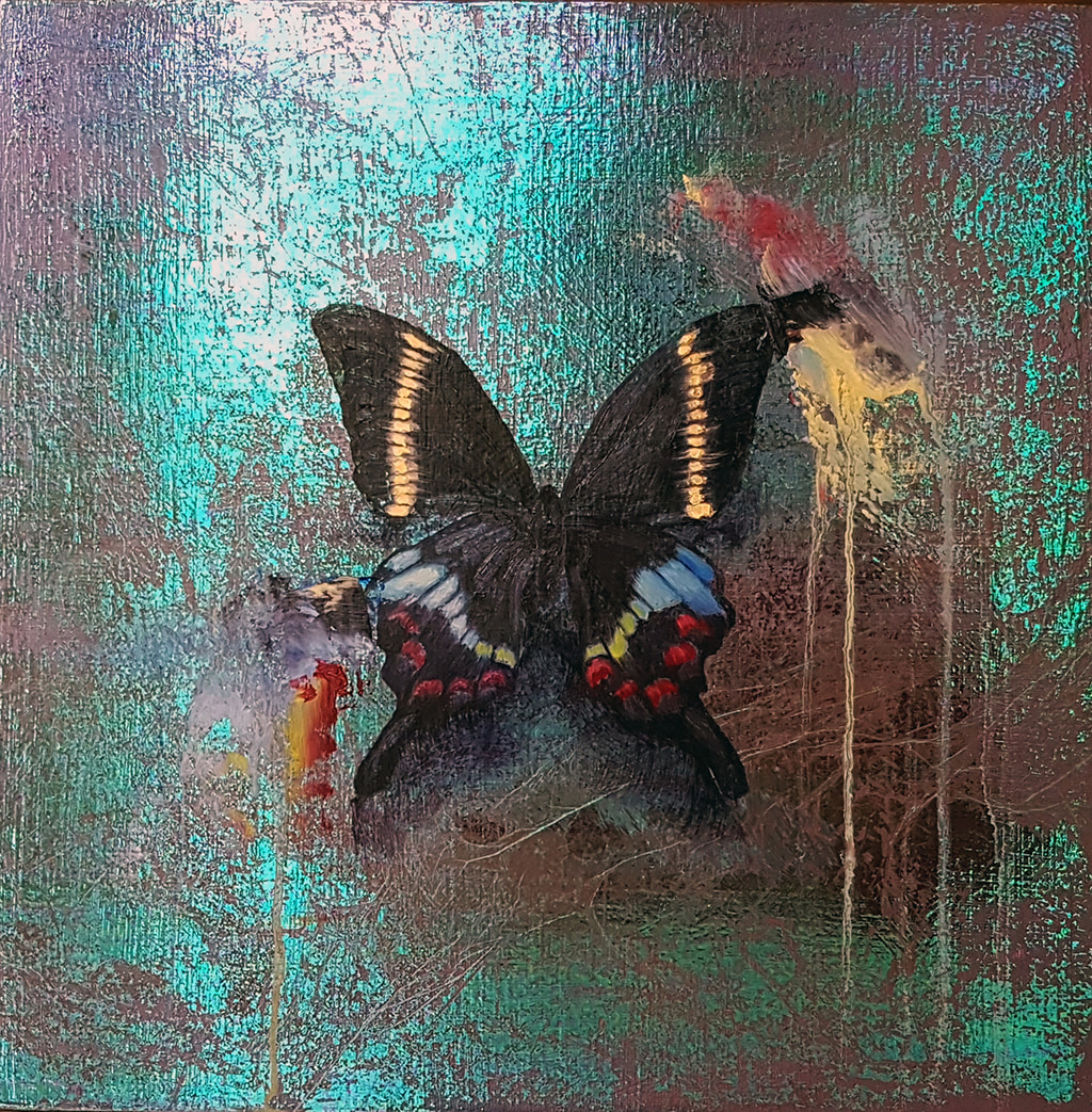 Black Velvet, 12 x 12 inches, oil and iridescent metal leaf on panel