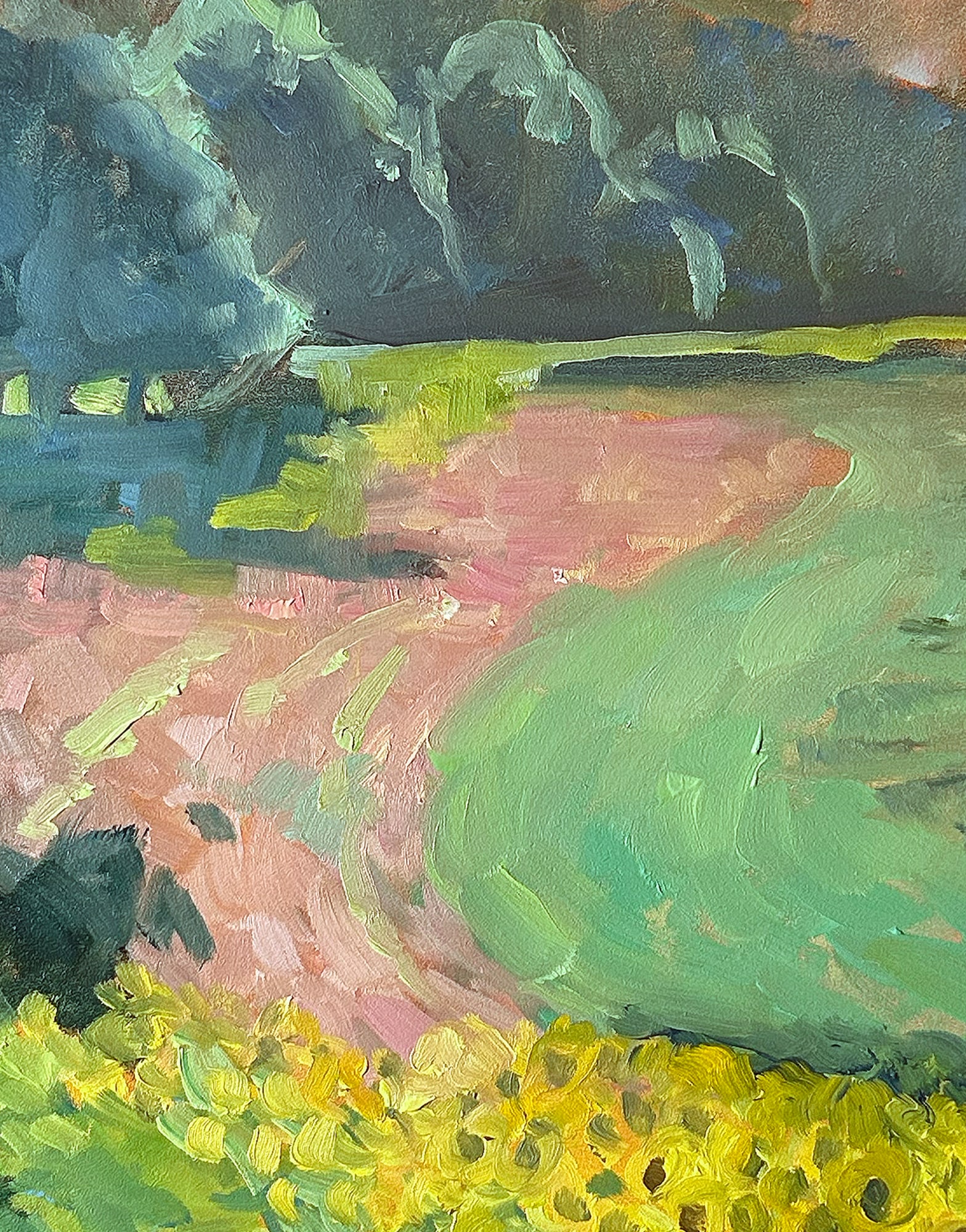 In the total spirit of plein air painting, this 11 X 14" oil is loose, joyful and energetic - just like I was this beautiful day. Painted live at the Biltmore Estate in Asheville, the sunflowers, lights and shadows were dancing with life and color. Many people stopped by to talk as I painted, and their responses told me I was onto something. This is painted on a hardwood birch board, so the strokes are rich and lively with texture. Ready for hanging and the perfect frame - or hang as is.