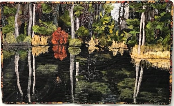 Cathy Drummond is a fibre artist who combines painting and quilting techniques to express the life of the ocean and woods that surround her.