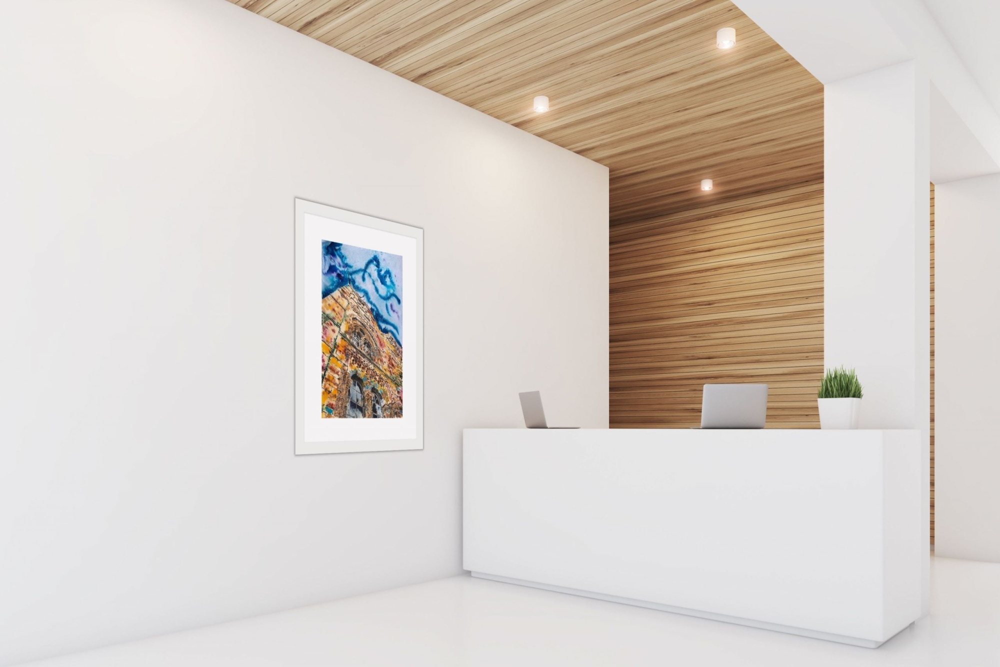 The Tower itself stretches to the sky, details disappearing as your eyes scan upwards. Then travelling back down, the colours pulsate with a vibrant richness. Golden yellows, jewel like blues and reds call out with deep blues and greens clashing. Trying to rein back the colour but the vibrant colours win the day.