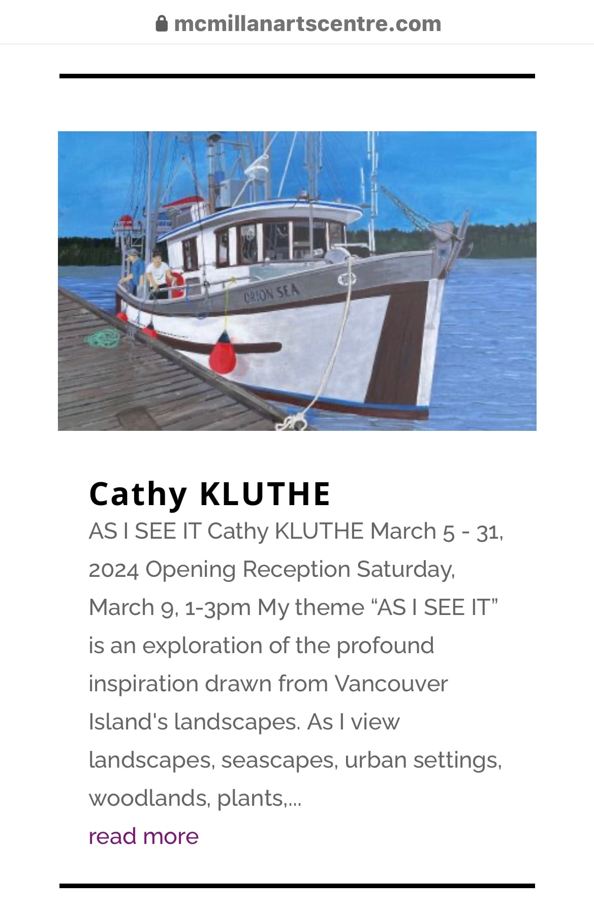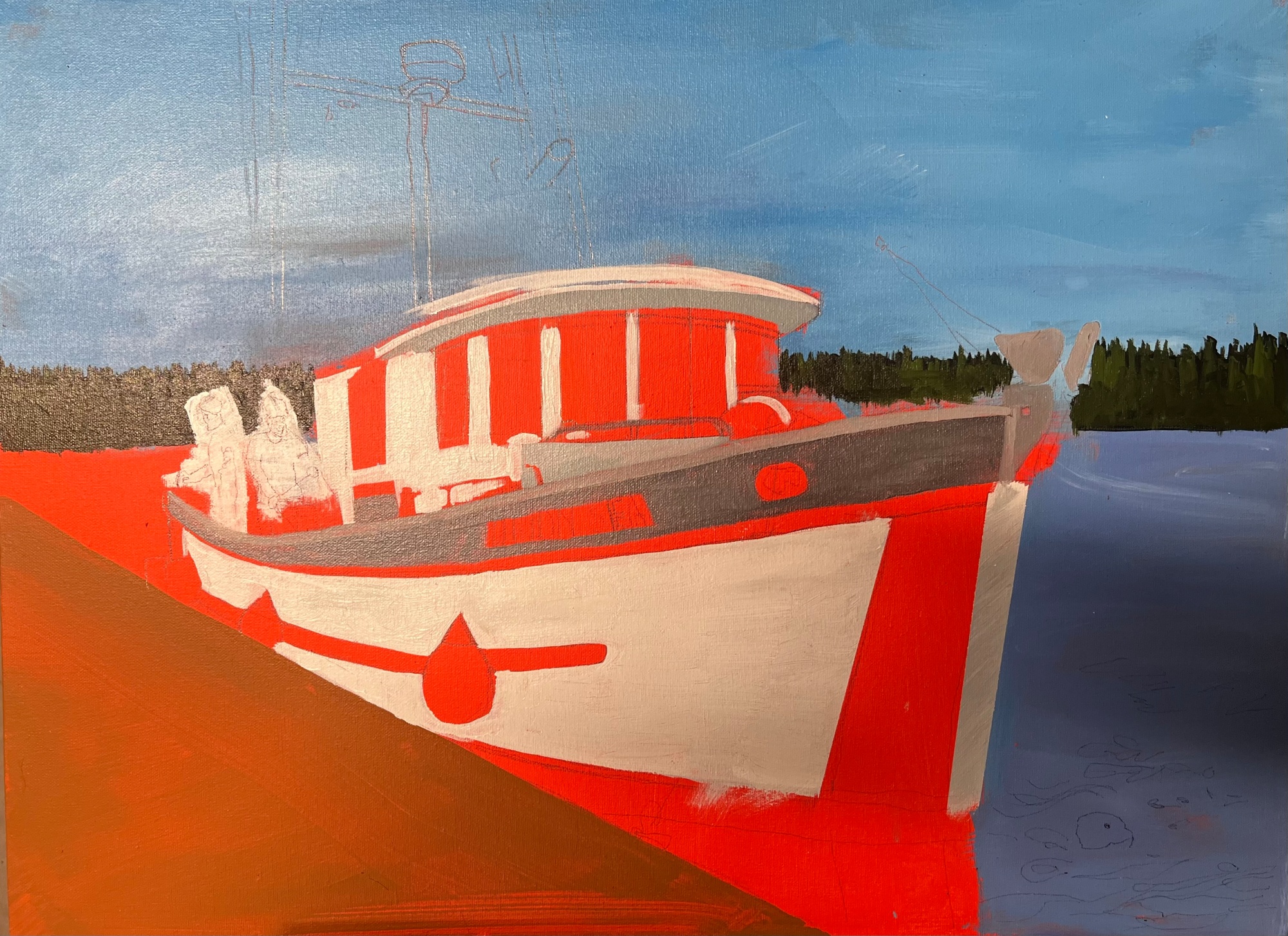 The painting "ORION SEA " is a commercial salmon troller and holds a special place in my heart. She was built at the Queensborough B.C. shipyard in 1974 by my father-in-law . Over the course of of her time she has traveled on the BC coastline as well as Oregon to southern Alaska. I also had the experience of fishing on her and now after the sale to a family friend, my daughter deckhands on her too.