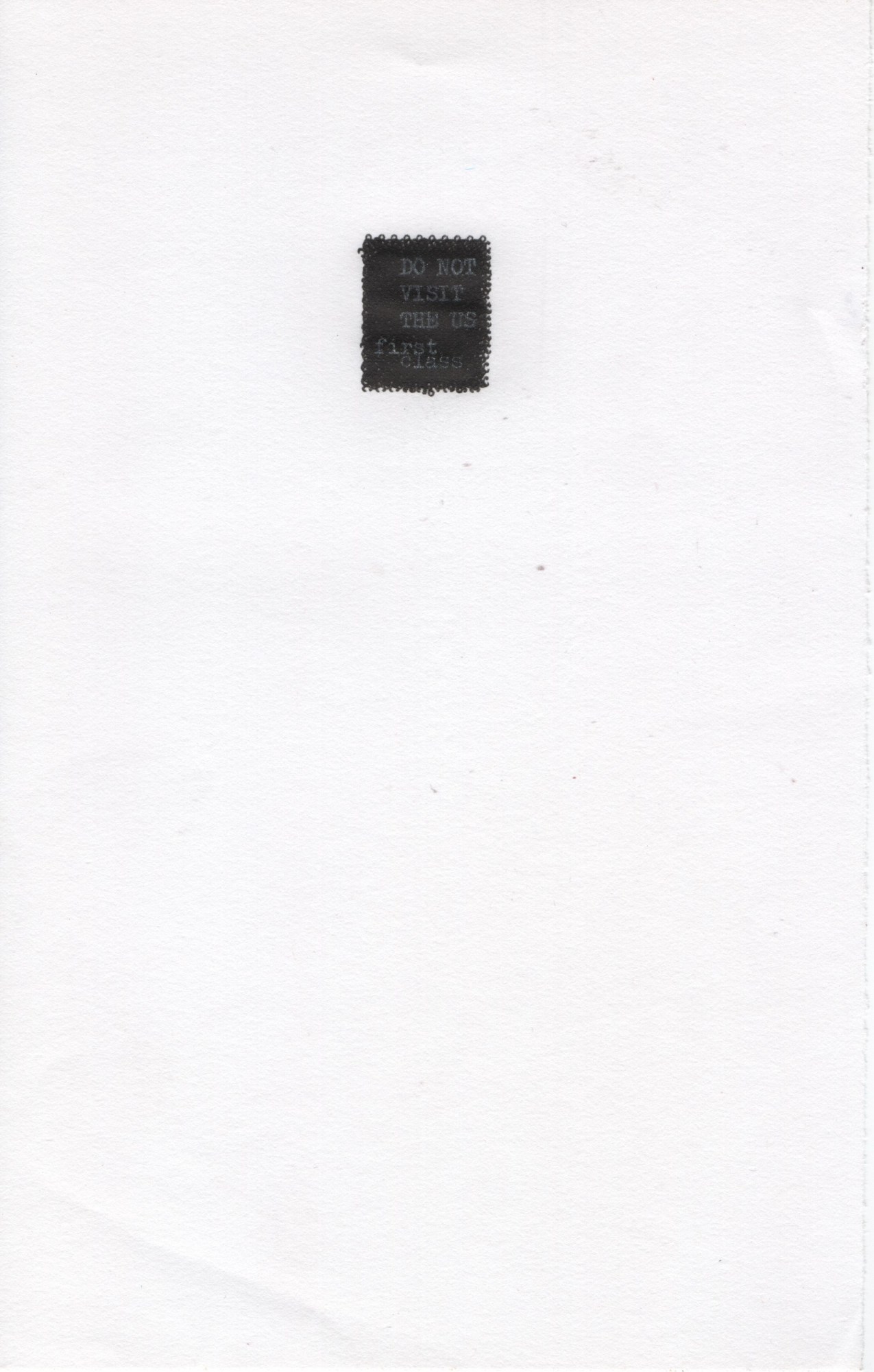 Text on stamp reads "DO NOT VISIT THE US first class"