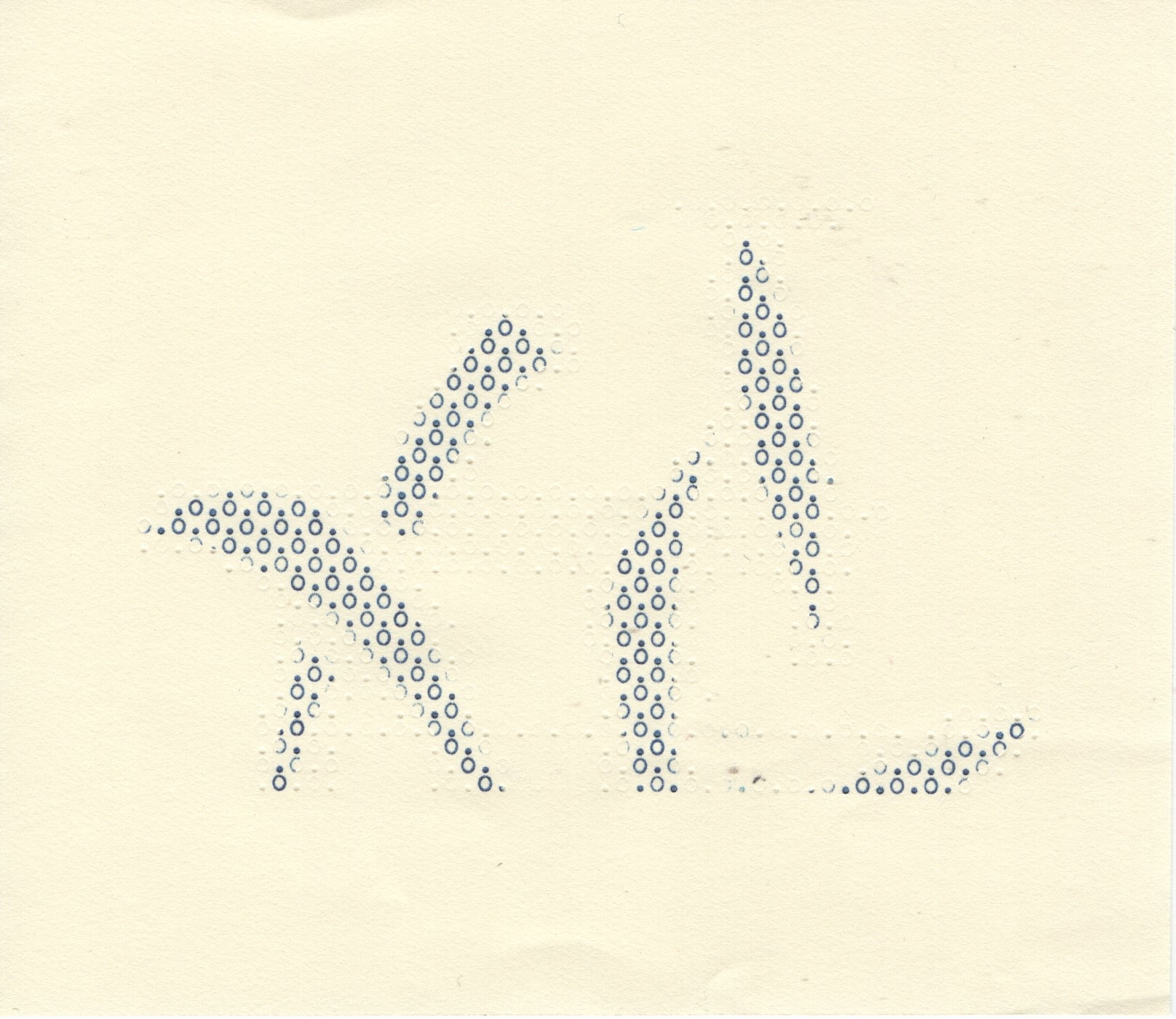 deep, uninked impressions left in paper where typing occured over the tape used during composition