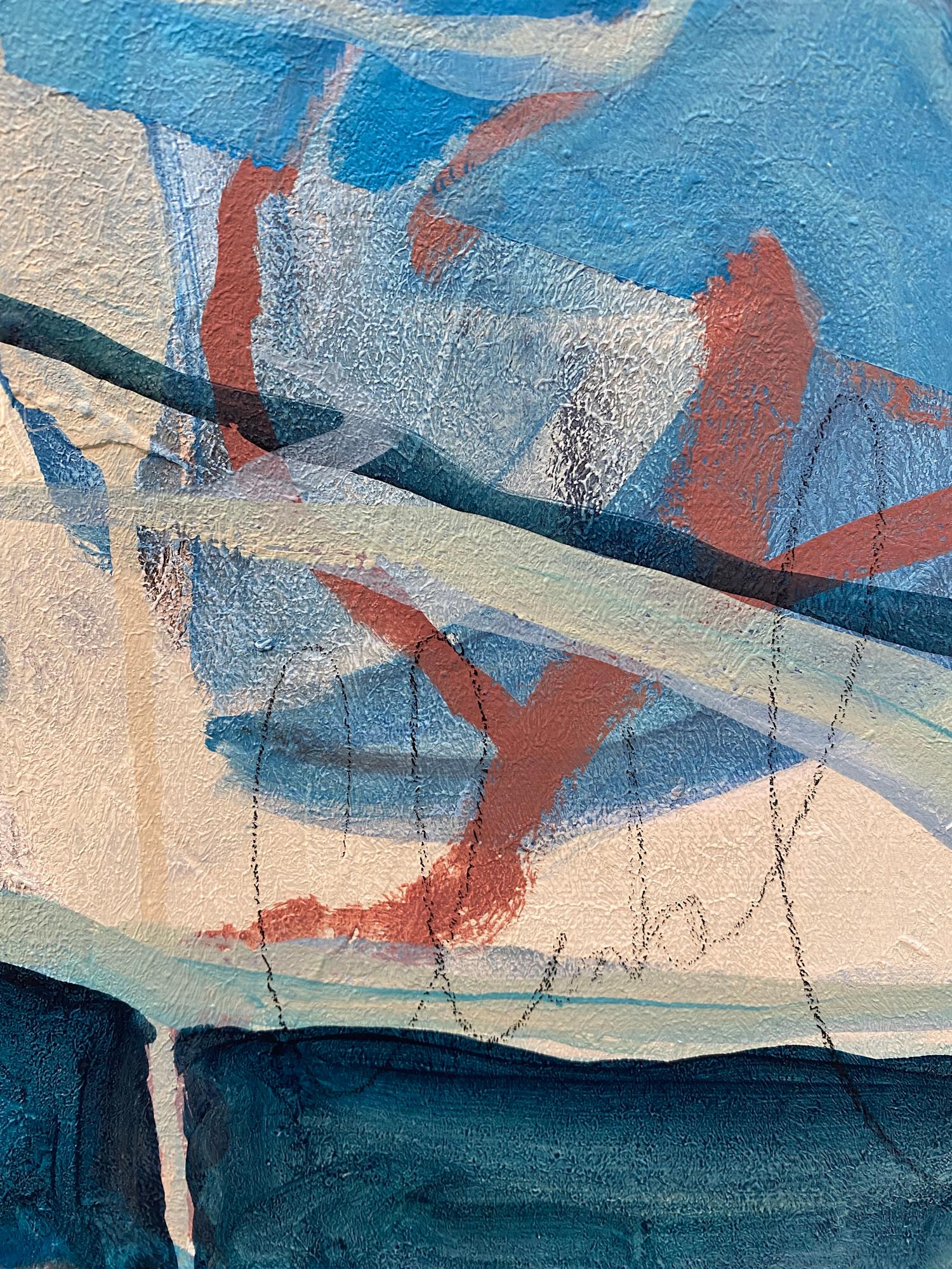 In Blautönen gehalten, lädt *Das Erwachen des Traums* den Betrachter in einen sphärischen Raum schimmernder Ungewissheit ein. Handelt es sich um eine Gletscherhöhle, ein sakraler Raum oder um die Tiefe des Meeres? Das Werk aus der Serie Sichträume verbindet eine ätherisch anmutende Tiefe mit architektonischen Anspielungen und organischen Formen. So entsteht eine magische, geheimnisvolle Atmosphäre, in der die Grenzen zwischen Natur und gebauter Umgebung ineinander verschmelzen. *Das Erwachen des Traums* lädt ein in die eigene traumhafte Welt zu tauchen und bringt jedem Raum eine Atmosphäre von Ruhe, Zufriedenheit und träumerischer Melancholie.