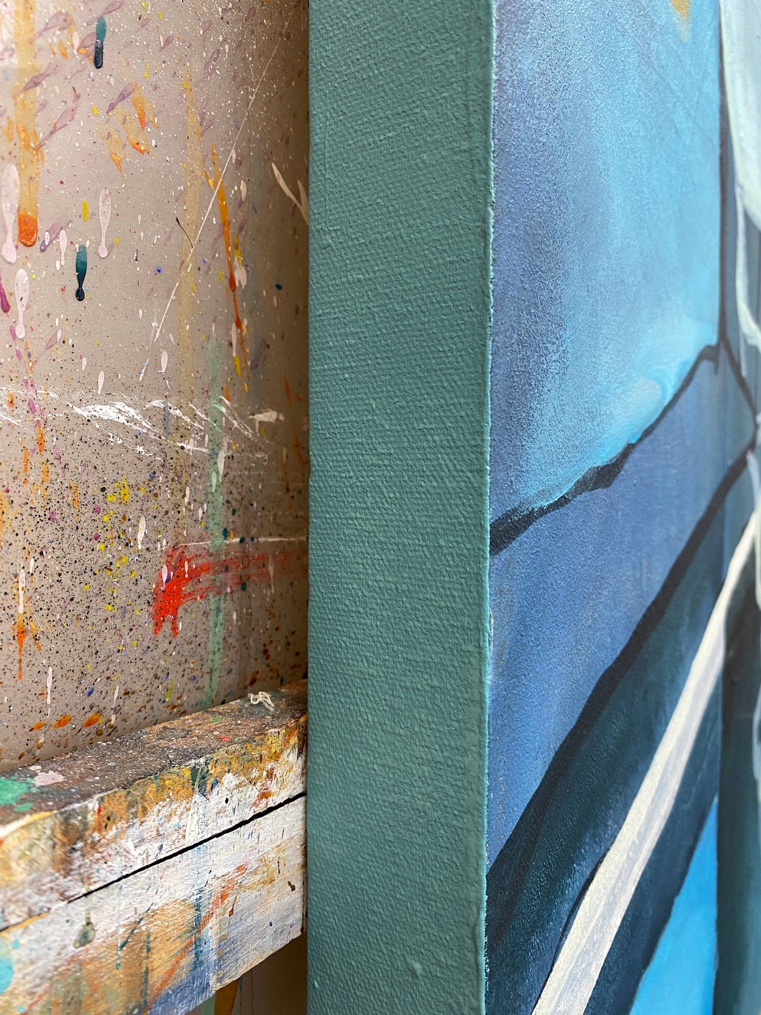 Painted in shades of blue, *The Dream's Awakening* invites the viewer into a spherical space of shimmering uncertainty. Is it a glacial cave, a sacred space or the depths of the sea? The work from the Visual Spaces series combines a seemingly ethereal depth with architectural allusions and organic forms. The result is a magical, mysterious atmosphere in which the boundaries between nature and the built environment merge. *The Dream's Awakening" invites you to immerse yourself in your own dreamlike world and brings an atmosphere of calm, contentment and dreamy melancholy to any room.