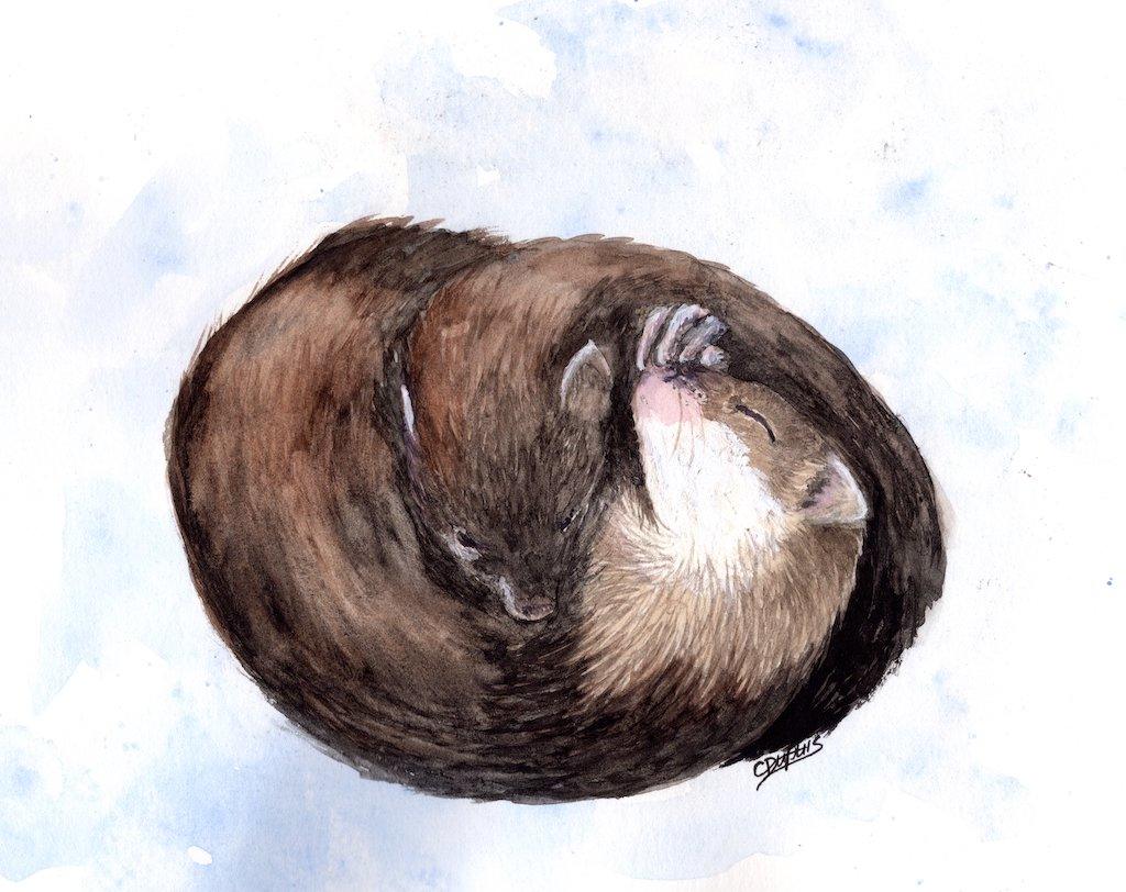 Those 2 little weasels were rescues from the PEI Wildlife Rescue Shelter. This painting is a part of the calendar fundraiser event for 2026.