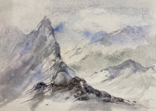Painting has been created on 100% cotton paper and mounted on cradled wood panel and waxed for protection.