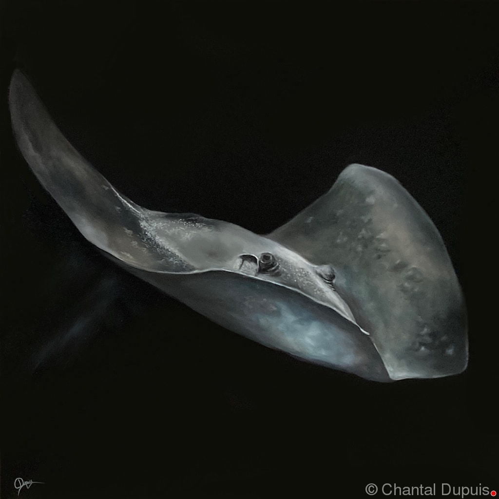 A memory of rays I saw on a trip to Grand Cayman. Oil painted on cotton canvas.