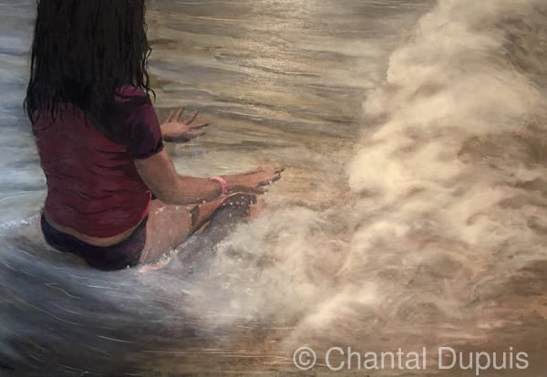 oil painting on cotton canvas. Painting of Camelie Courchesne at the beach on a family trip