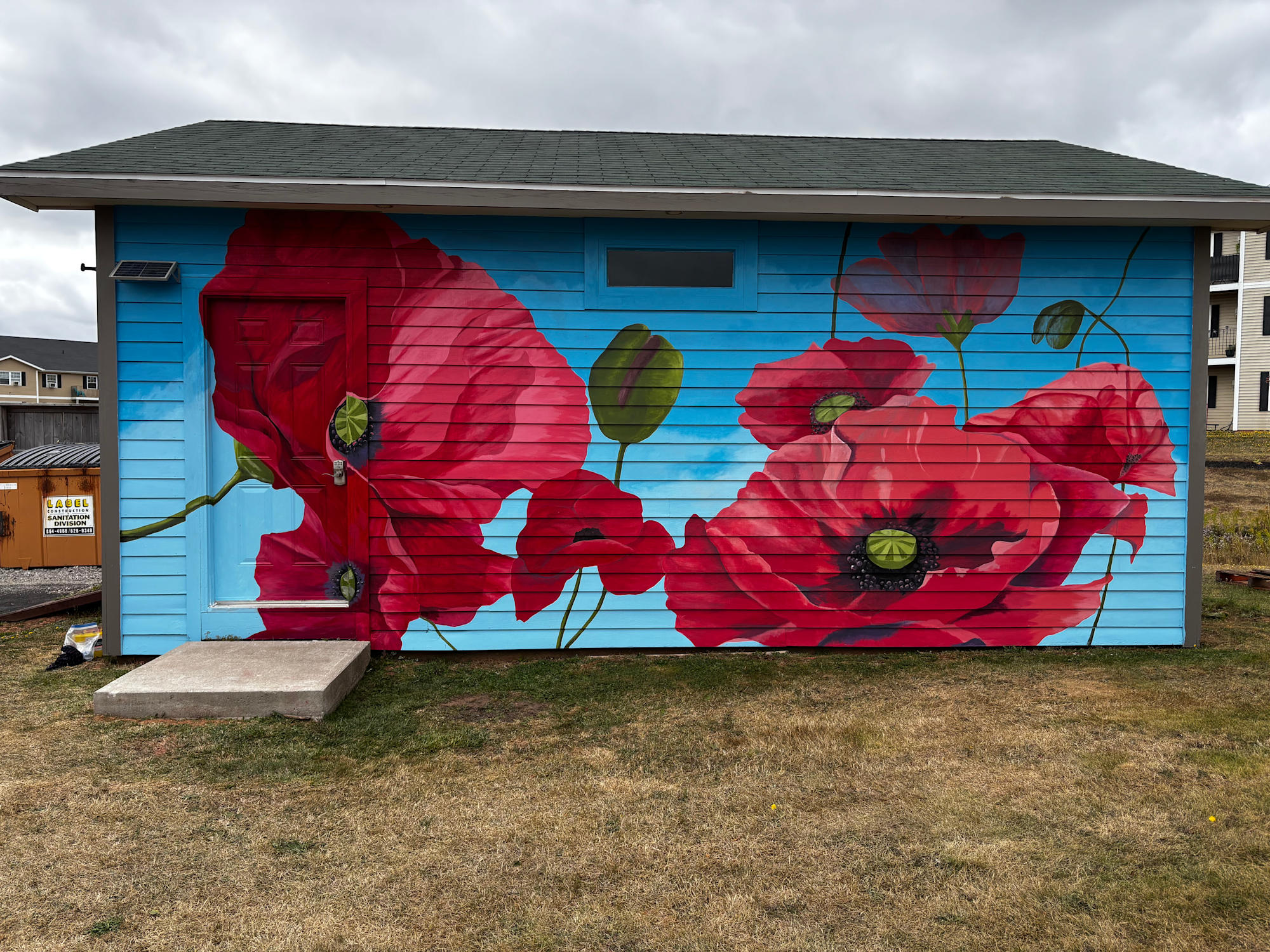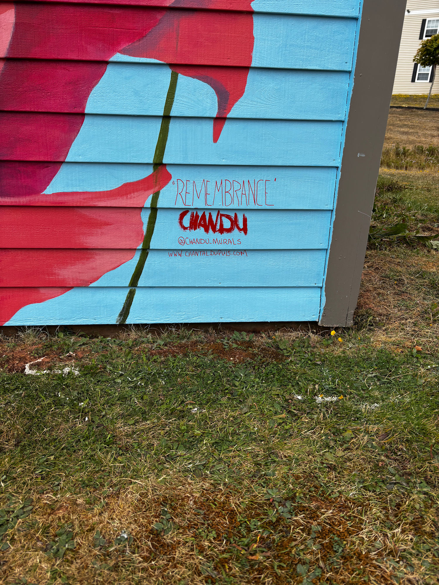 “Remembrance” - 223 sqft Acrylic paint, Stratford, PEI, 2025. Funding body: Town of Stratford through Mentorship Grant.