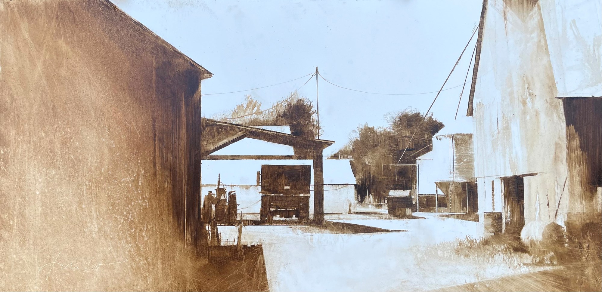 Charlie Hunter is a cheerful guy who paints drippy portraits of decaying American infrastructure in Bellows Falls, Vermont.