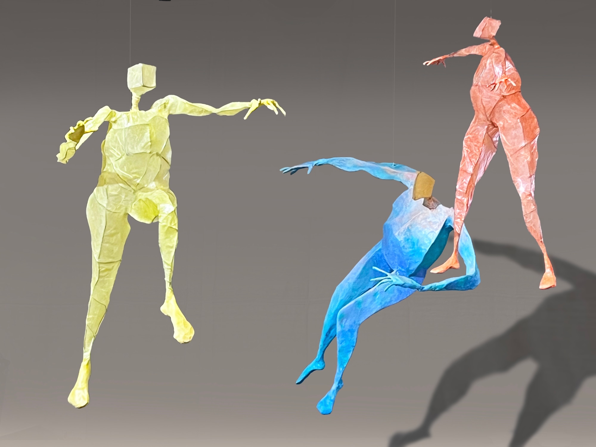 MessageThree-figure mobile of translucent mulberry paper and polymer.