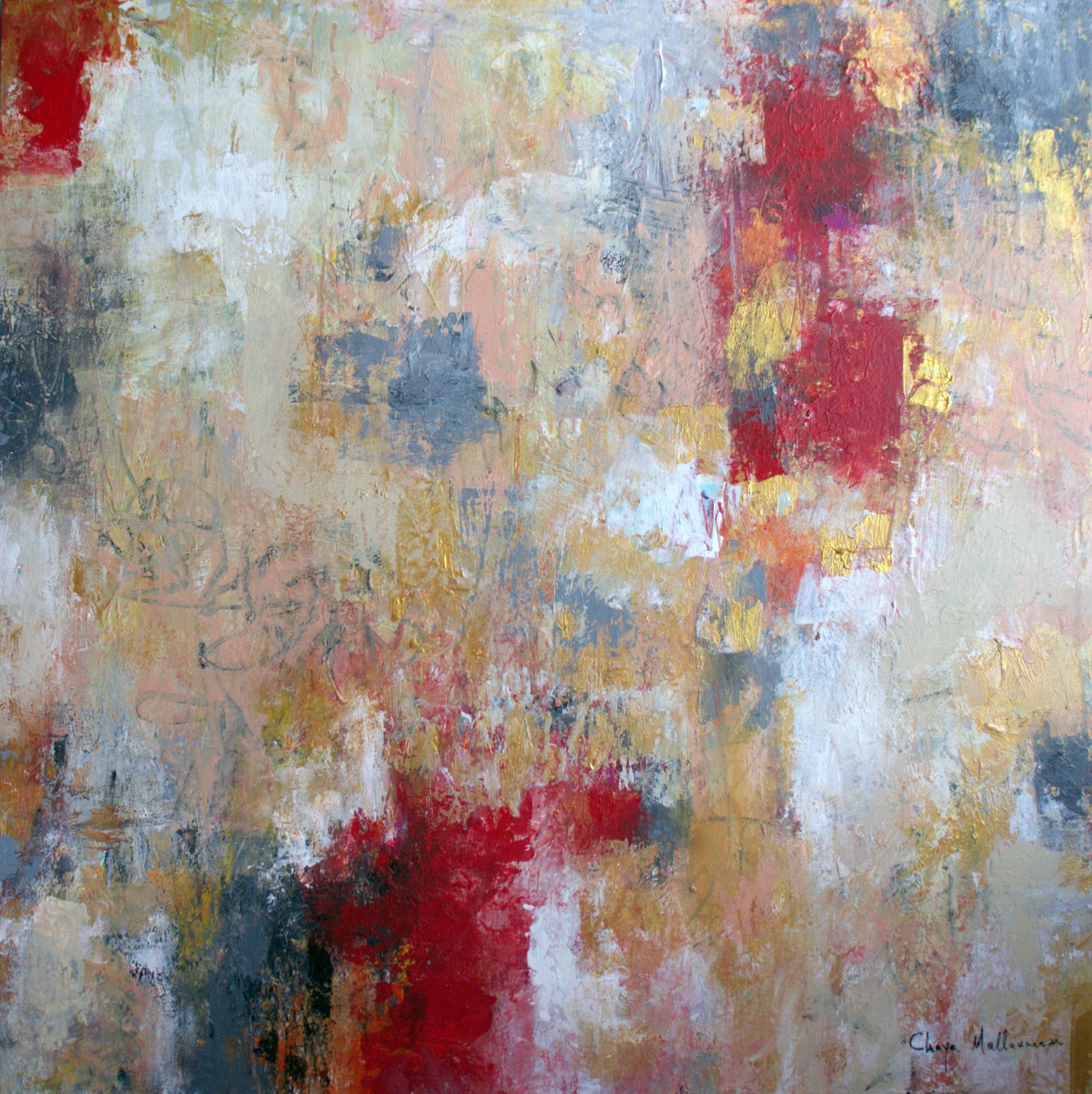 This painting is 36 X 36 inches, created with playful and joyful strokes, with red, gold, and white as the dominant colors. It carries the "New Beginning" vibe and will remind you to be carefree and happy.