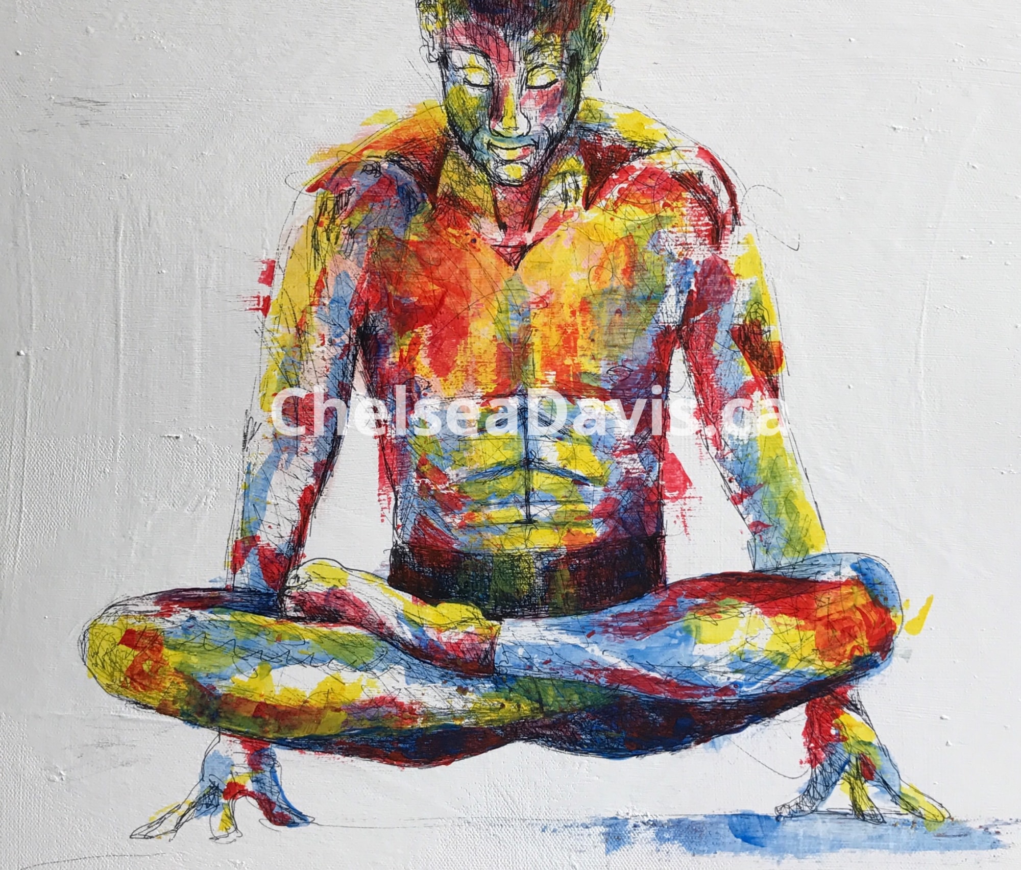 Power of Peace has a special place in my heart. The original artwork is a 16x20 inch acrylic on canvas piece. I didn't think I would ever meet anyone that could do this pose, it takes incredible strenth and focus. Many people tried and many almost made it!
