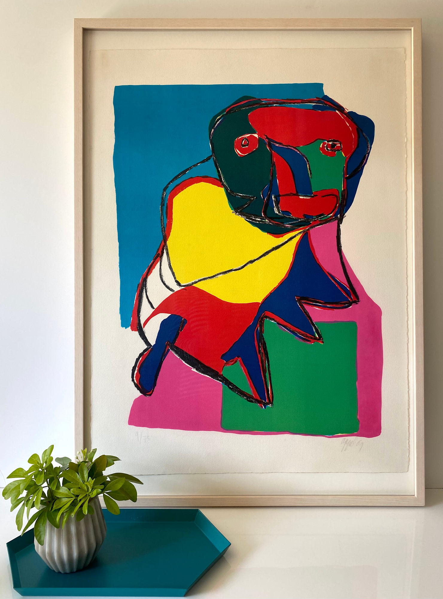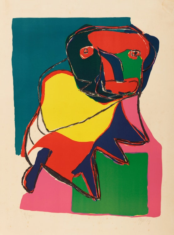 Karel Appel was an influential Dutch painter whose figurative abstractions employed expressive colours and forms. Like Jean Dubuffet, Appel found inspiration in the artwork of children and the rejection of sophisticated aesthetic tastes. In 1948, he helped form the CoBrA group, a collective of artists who were united in their rejection of rationalism and geometric abstraction. Appel’s works are presently held in the collections of The Museum of Modern Art in New York, the Art Institute of Chicago, the National Gallery of Art in Washington, D.C., and the Rijksmuseum in Amsterdam.