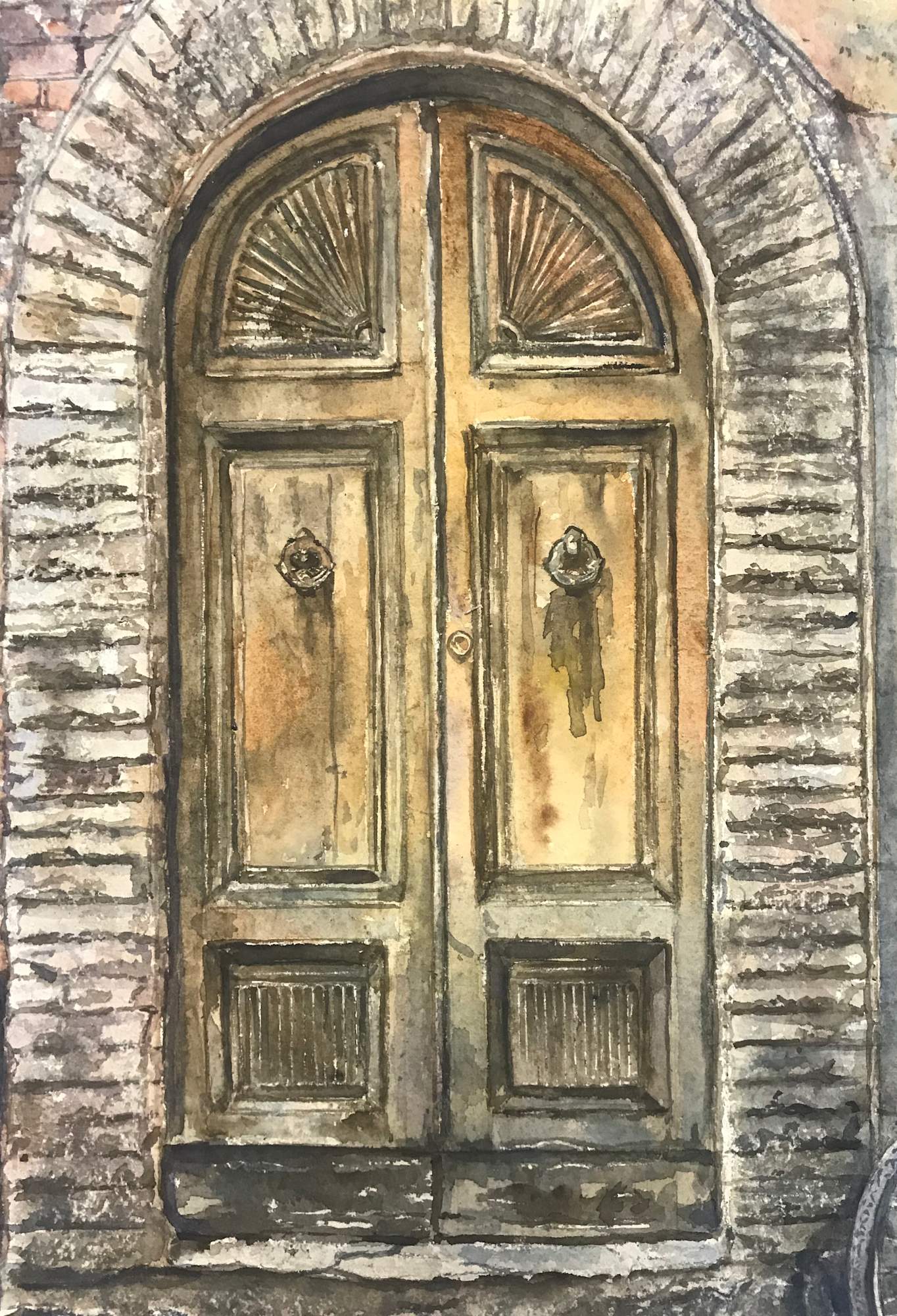 As an architectural historian, I appreciate the well-preserved Renaissance city of Lucca. With this watercolor, I strived to convey the textures, colors and memories I have of this beautiful place and experiencing its culture.