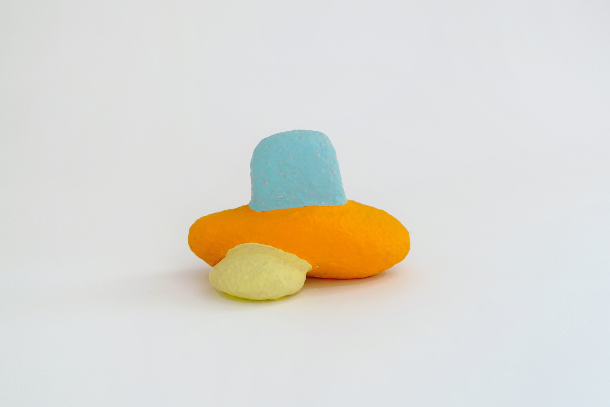 As sculptors, we are constantly negotiating the physical space, materials, and labor that go into creating, displaying, and storing our work. During quarantine, the scarcity of materials has reinforced the practice of resourcefulness – making something out of what is readily available to us: rocks, sticks, found objects, post-consumer packaging, and ephemera salvaged from the 100-year-old farm at which we are self-isolating (including old metal hardware, segments of plumbing pipes, odd knobs, et cetera). This collection of objects is the foundation of sculptural assemblages that are glued together and covered with paper pulp, itself made from discarded phone books found on the farm and processed into sculpting material. Through the process of building, pulping, and painting, we charge each object with a new and curious life, excavated from what may otherwise be overlooked or abandoned.