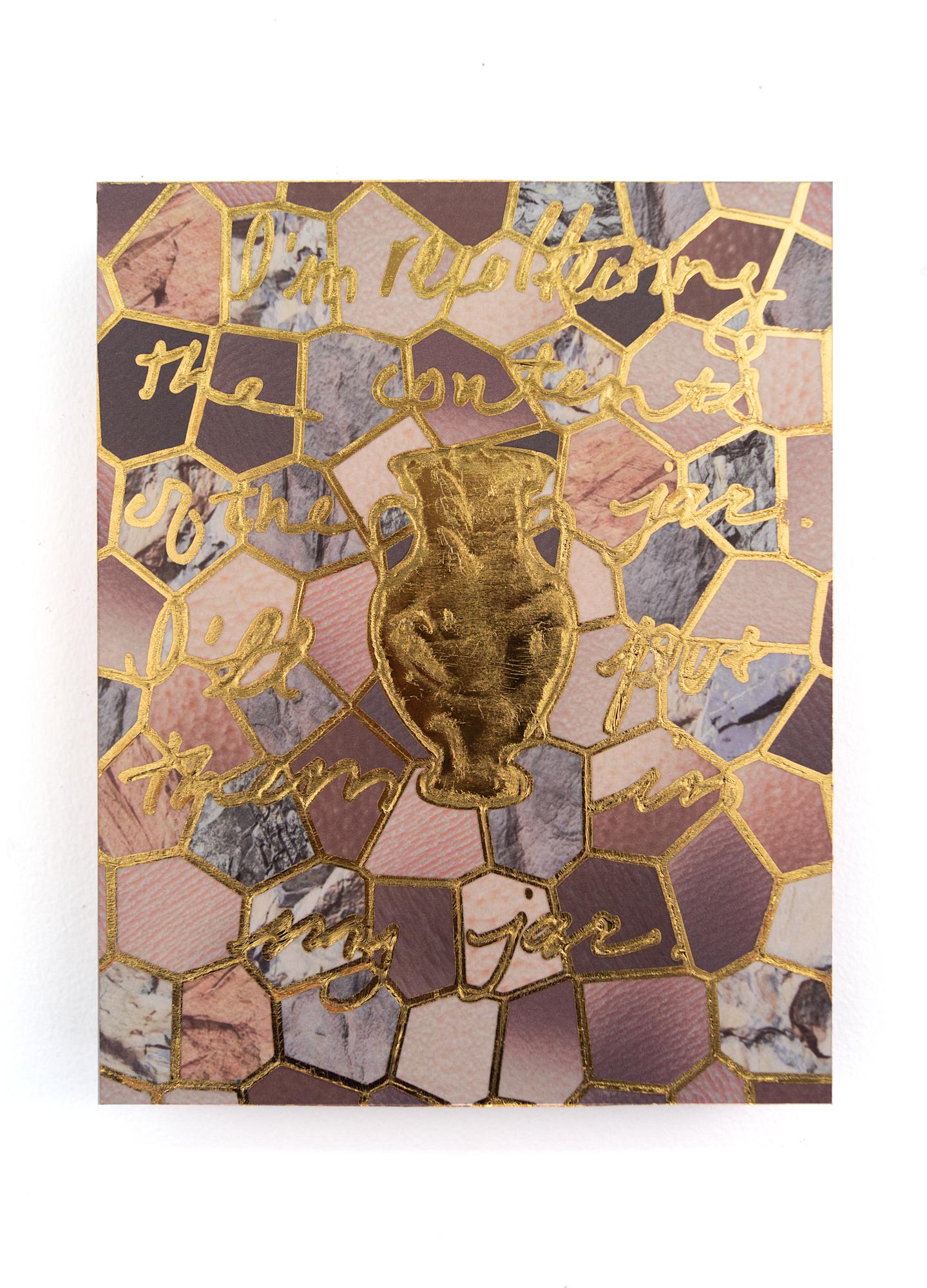 Collage from digital prints on Kozo paper, vinyl, mounted on panel