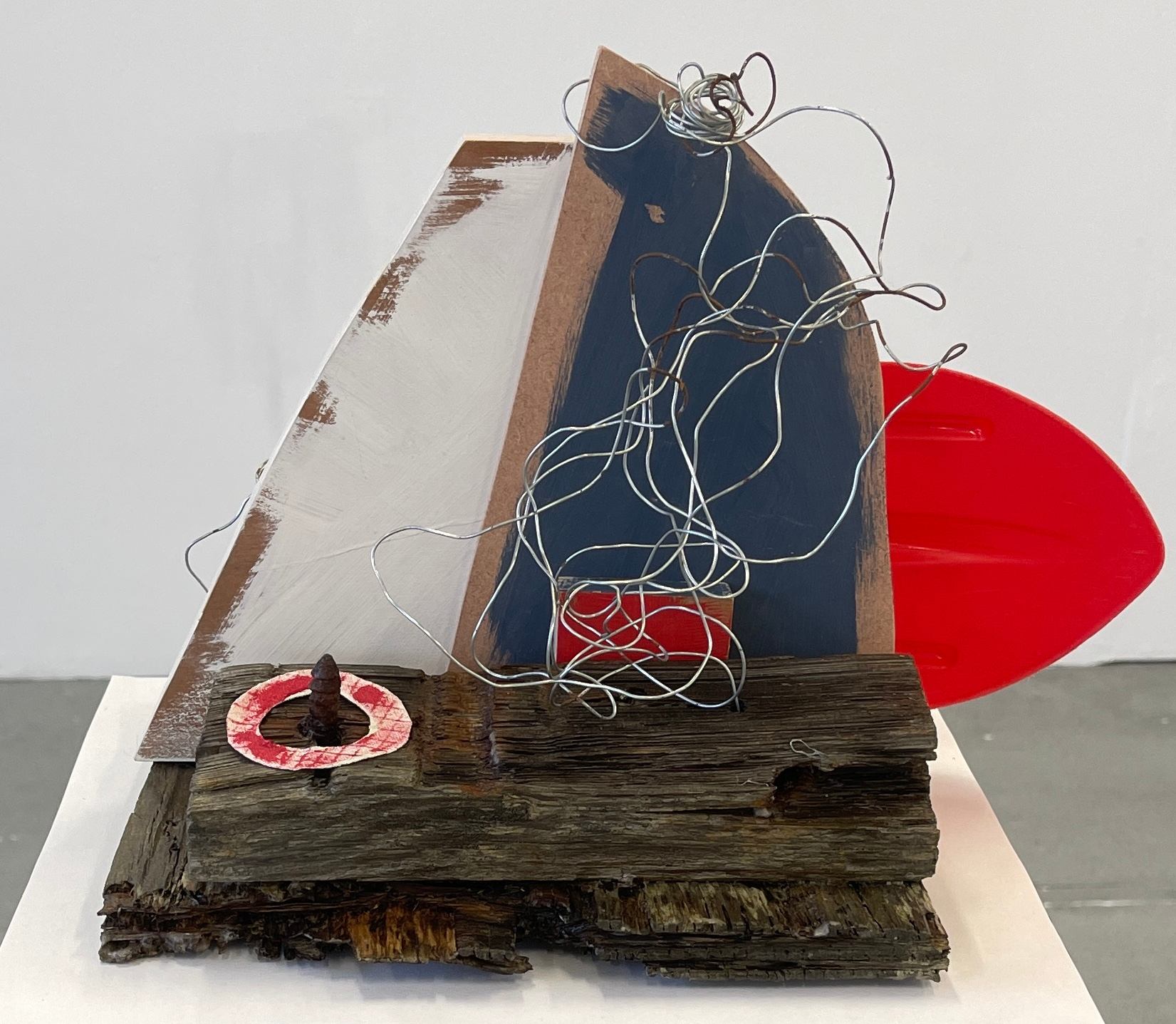 • Painted wood off-cuts, painted sail off-cuts, wire and unaltered materials collected from the beach.