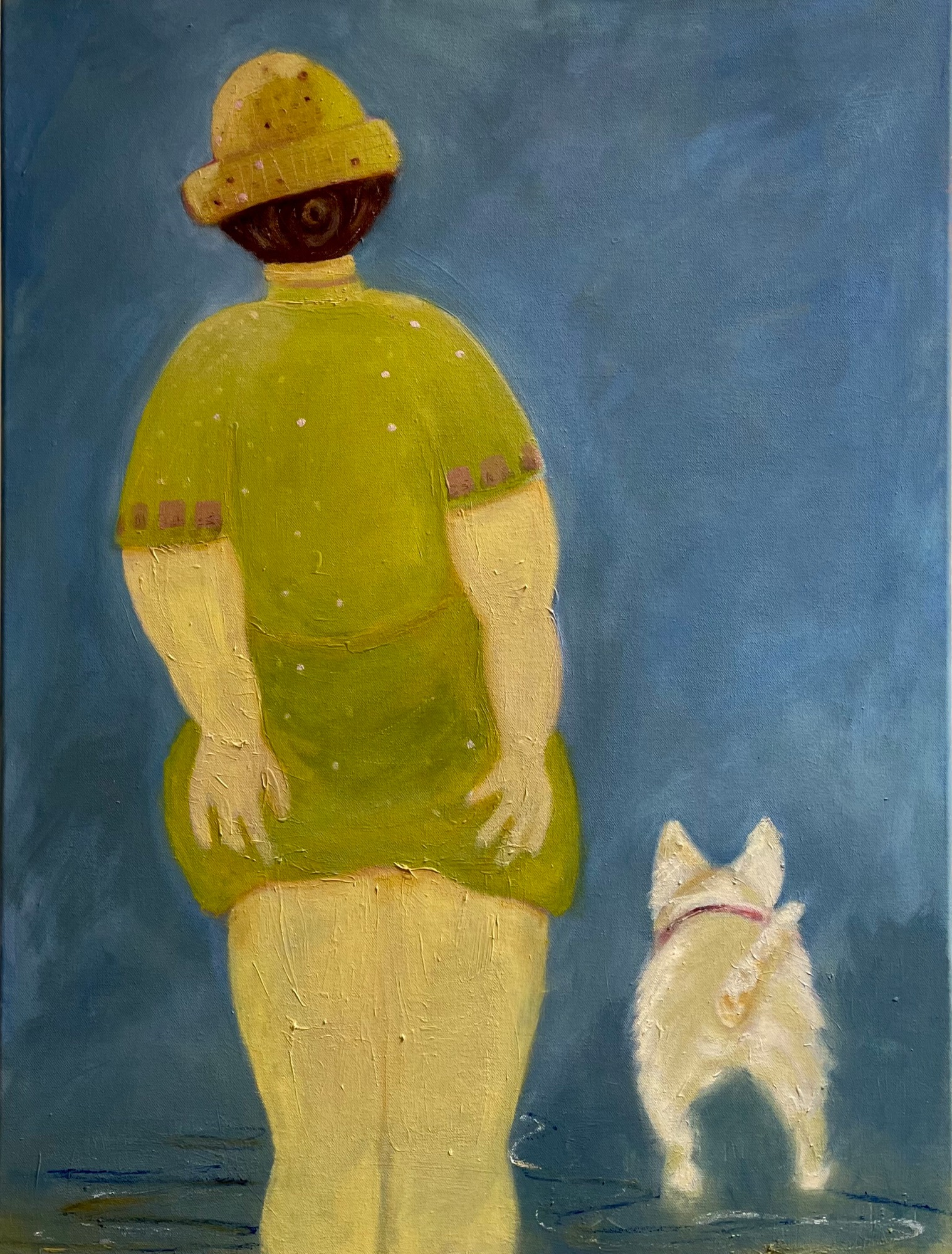 This is a gentle painting of a woman and her dog, inspired by a retro image I saw. It speaks to a quieter time, of friendship and companionship.
