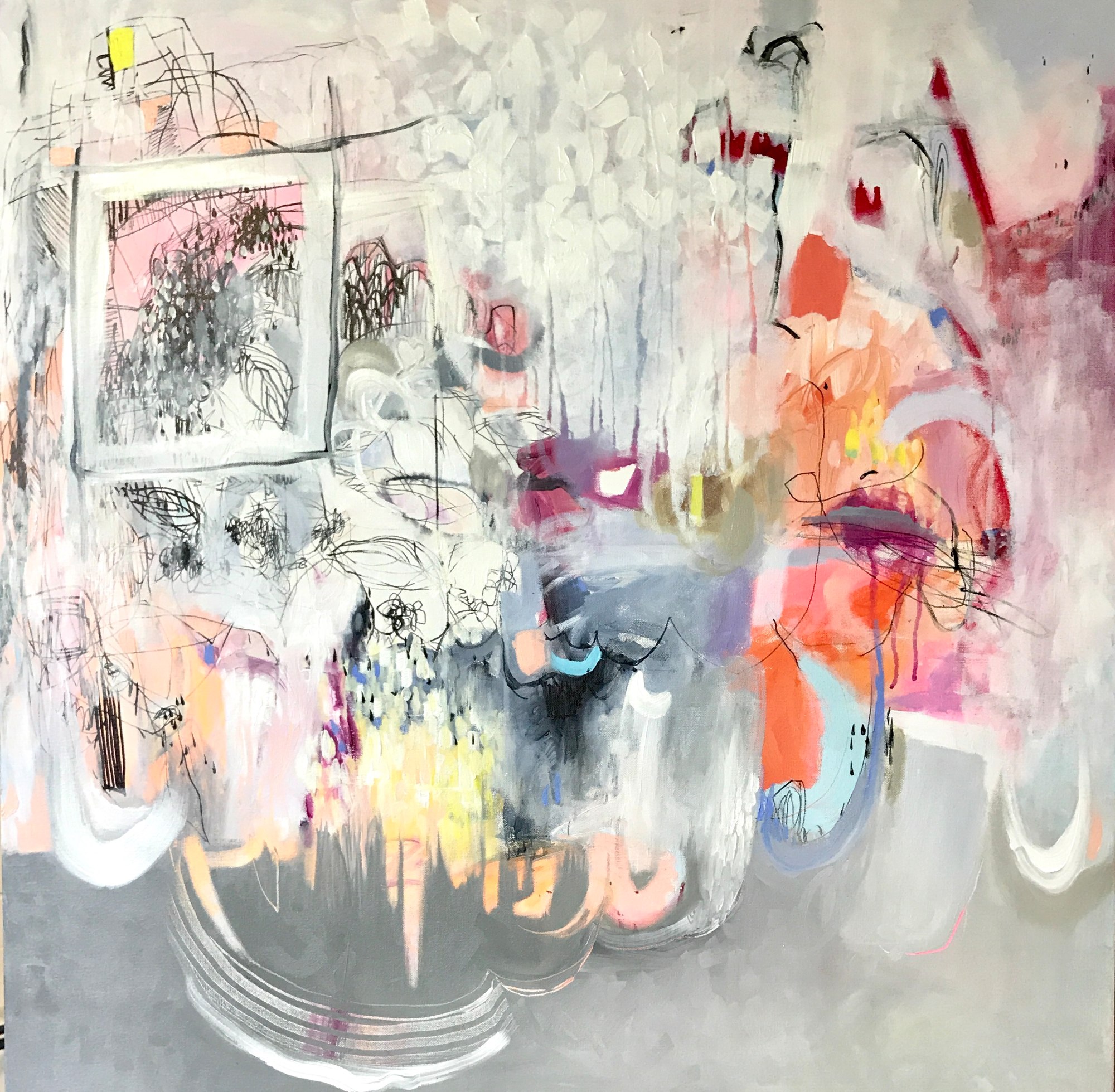 acrylic, ink, charcoal