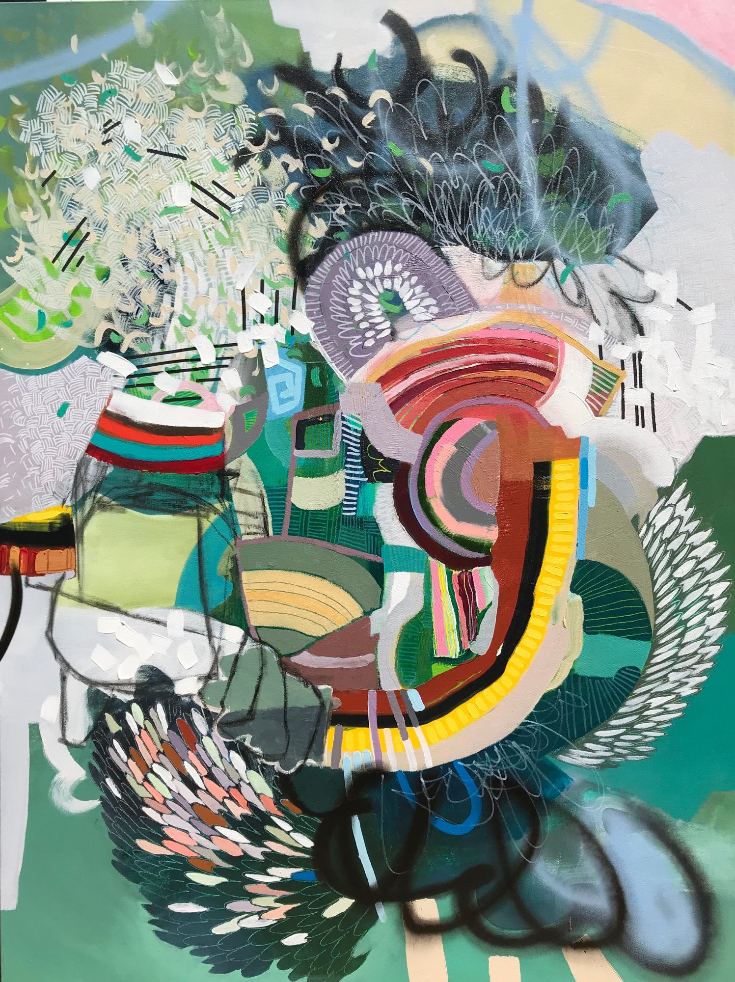 Acrylic, spray paint, charcoal, paint pens canvas