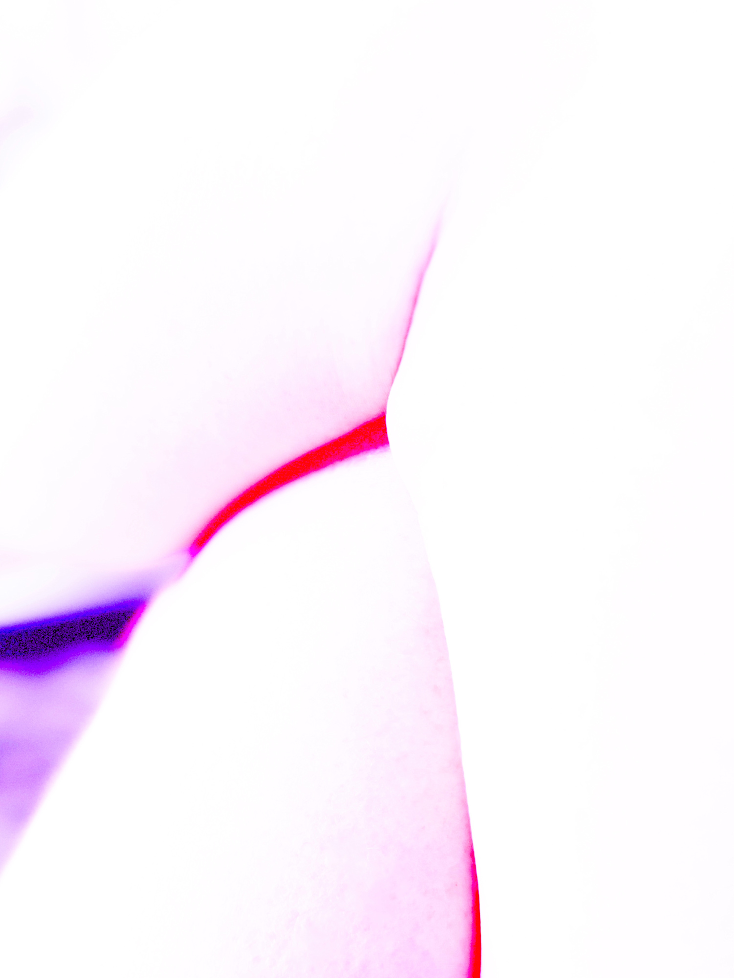 A minimalist interplay of light, shadow and color highlights gentle curves that invoke a sense of serene mystery by abstracting the form of a woman’s legs.