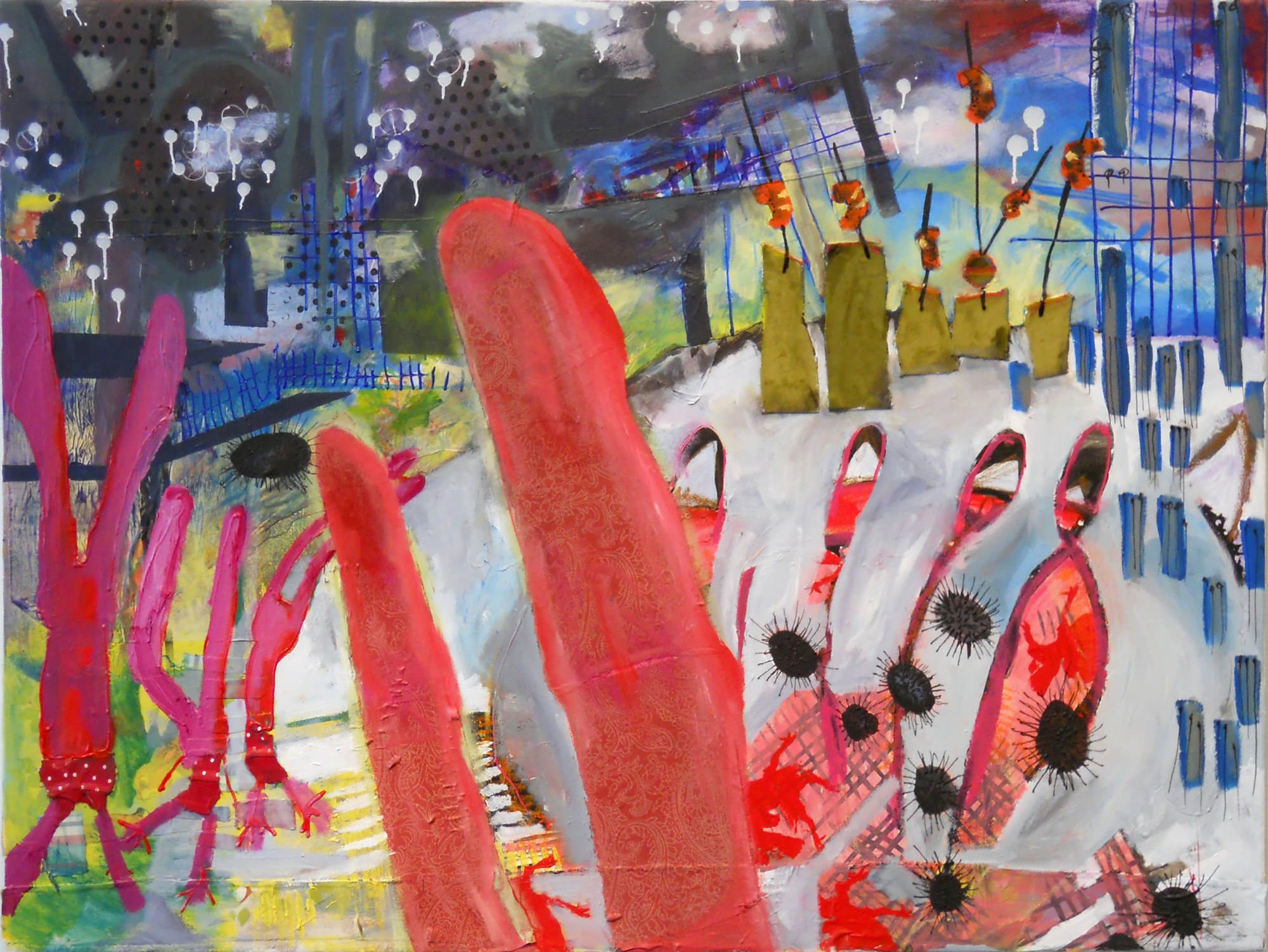 This piece is currently unstretched (on rolled canvas) and would need stretching or framing for display.