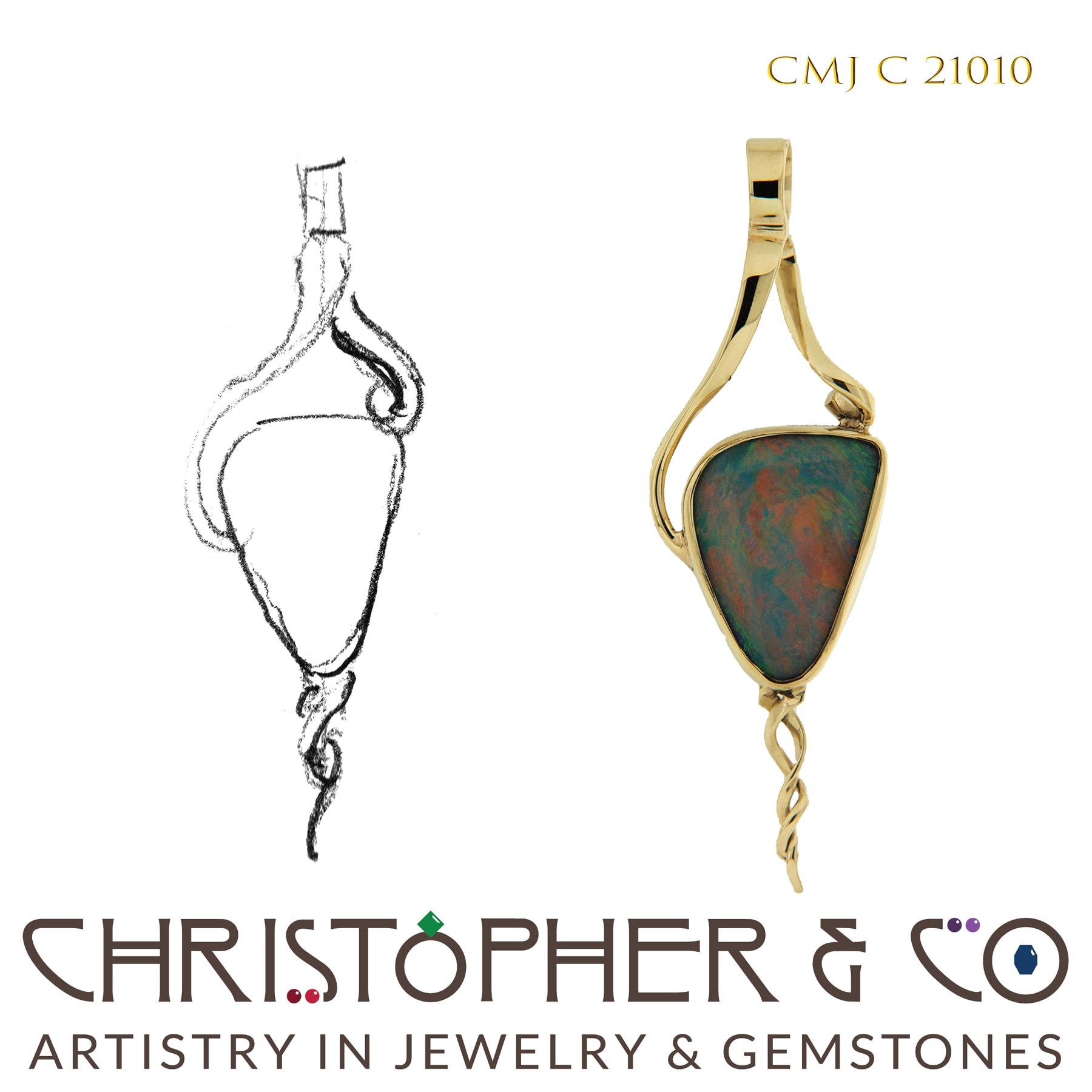 14 karat yellow gold pendant designed by Christopher M. Jupp and set with one 4.19 carat opal doublet.