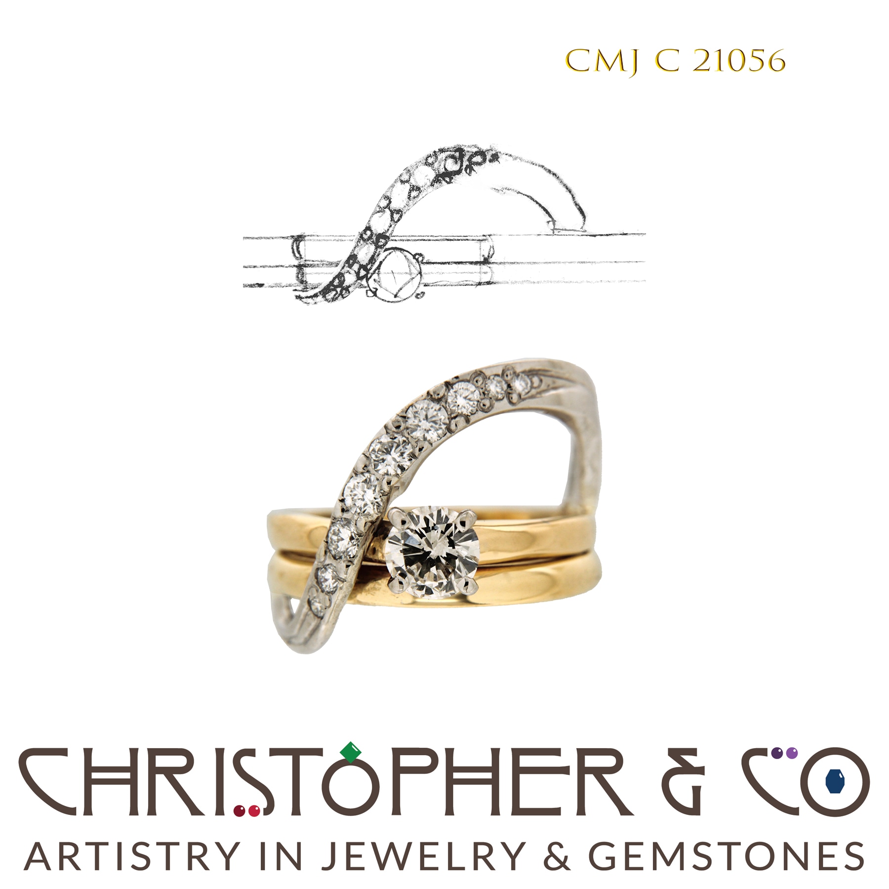 14 karat yellow and white gold wedding ring set custom designed by Christopher M. Jupp in 2021.