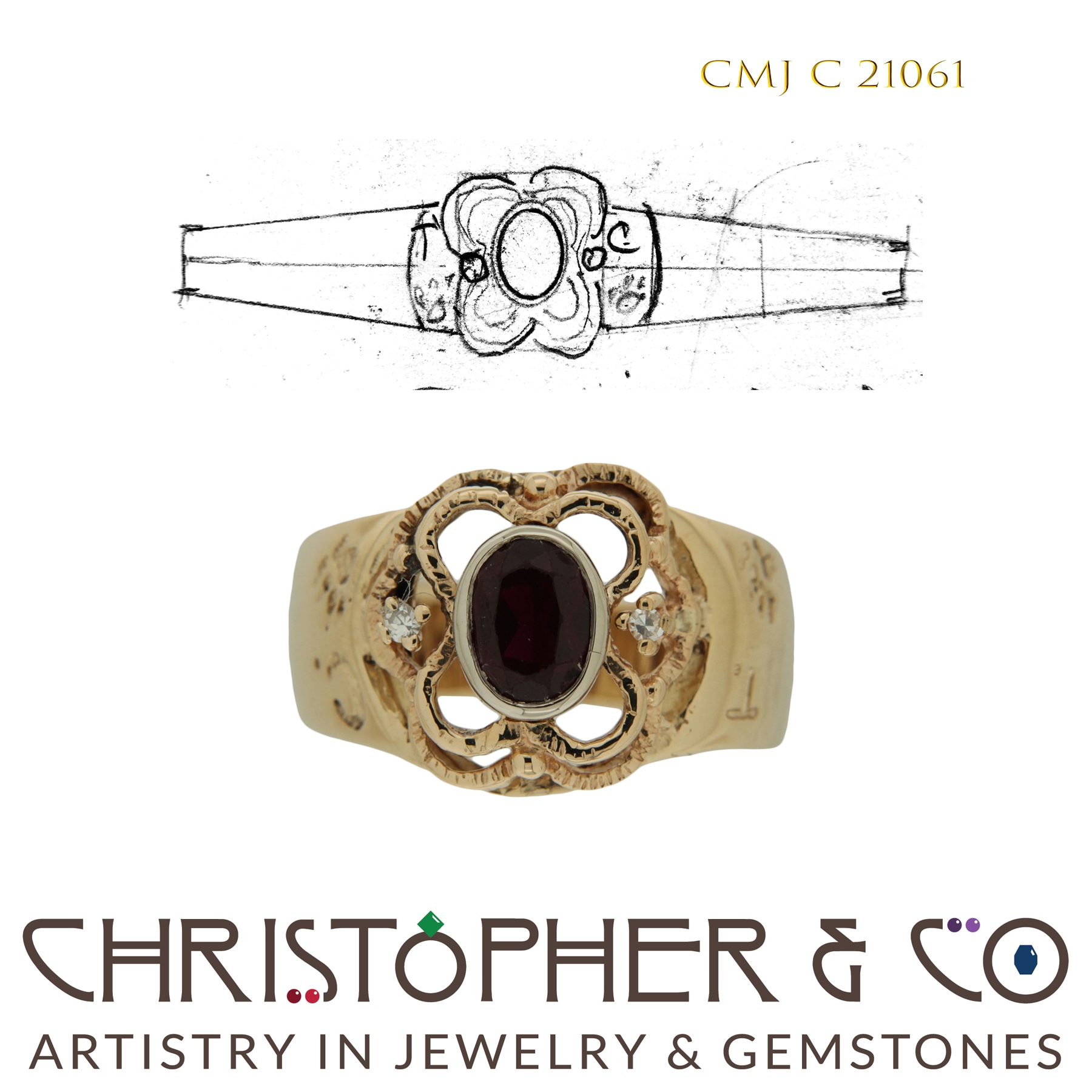 14 karat yellow gold ring designed by Christopher M. Jupp. The ring is set with faceted gemstones which were supplied by the client.