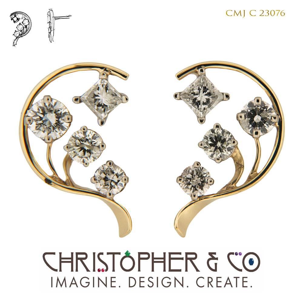 CMJ C 23076 Gold earrings set with diamonds designed by Christopher M. Jupp. by Christopher M. Jupp  Image: CMJ C 23076 Gold earrings set with diamonds designed by Christopher M. Jupp.