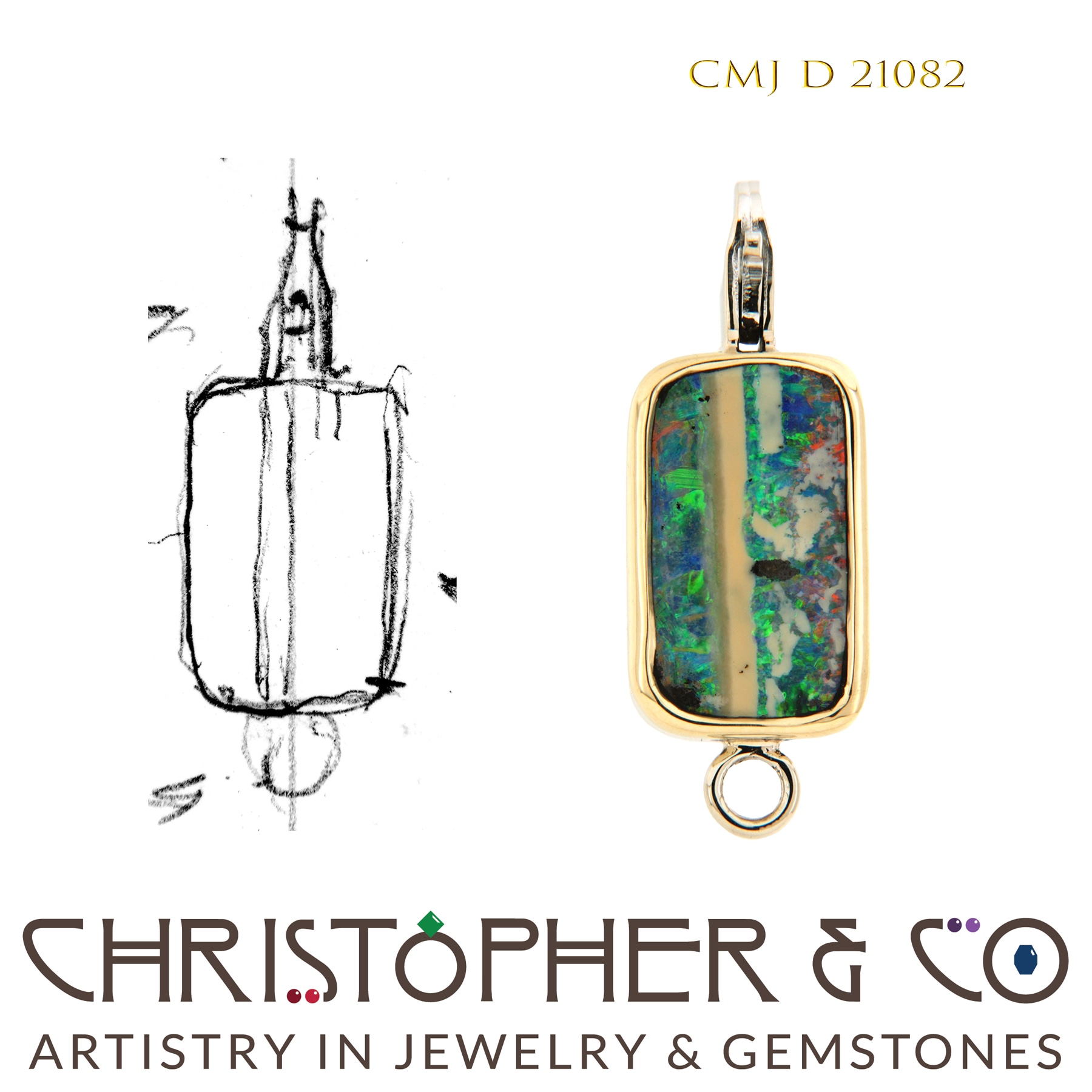 14 karat yellow and white gold element designed by Christopher M. Jupp. The element is set with one 3.87 carat Boulder Opal.