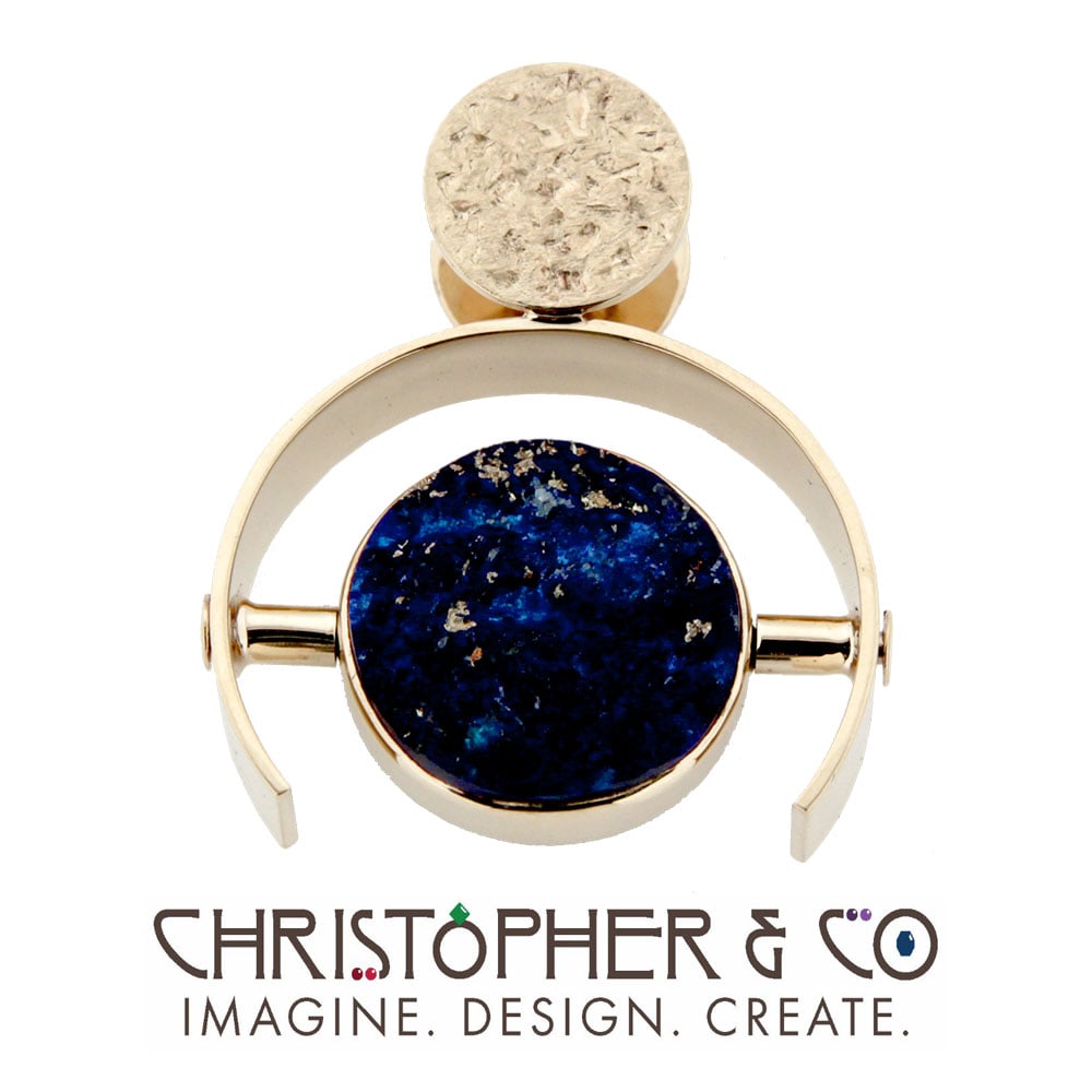 One 14 karat yellow gold pendant which was designed and hand crafted by Christopher M. Jupp. This pendant is set with Lapis Lazuli.