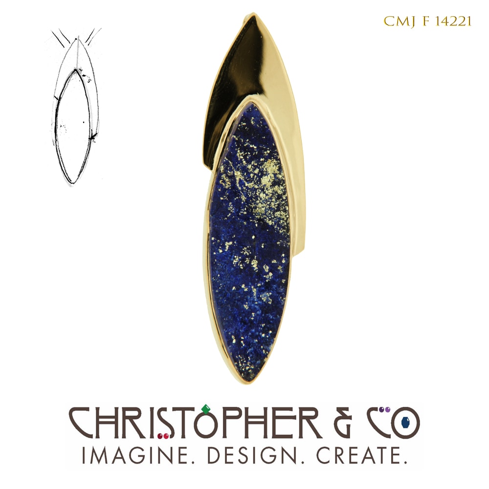 14 karat yellow gold pendant set with one lapis surface cabachon designed by Christopher M. Jupp.