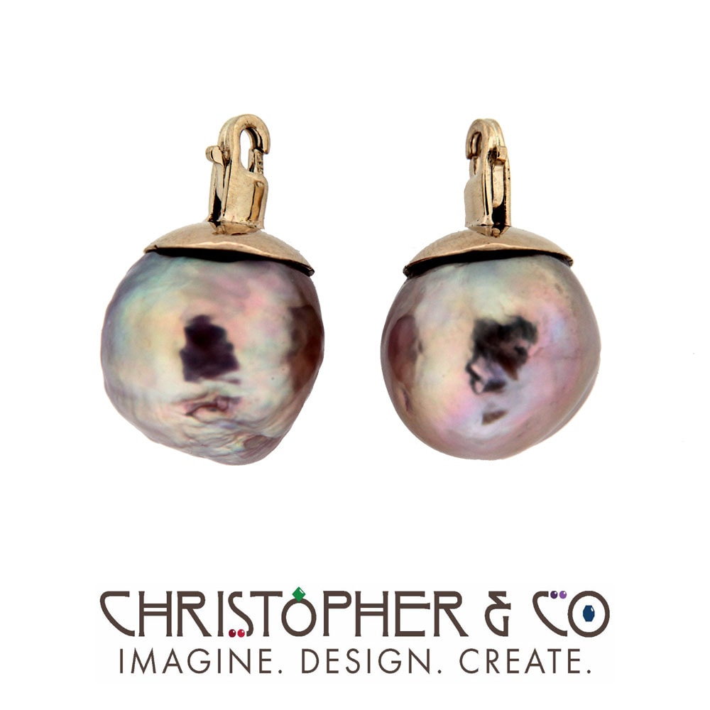 One pair of 14 karat yellow gold elements designed and hand crafted by Christopher M. Jupp. The elements are set with one pair of pink Ming pearls.