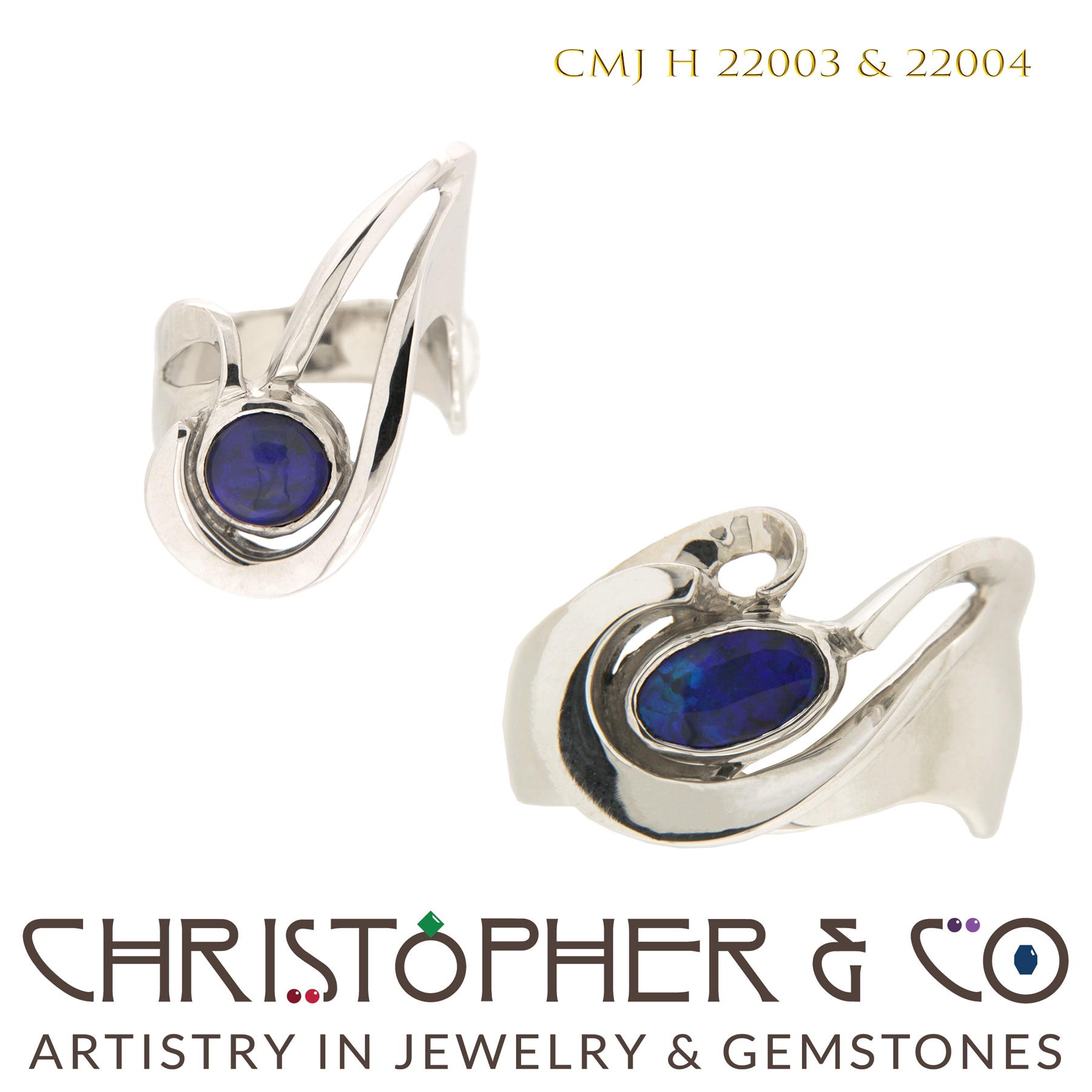 One 14 karat white gold ring designed by Christopher M. Jupp. The ring is set with a 2.12 carat black opal cabochon.