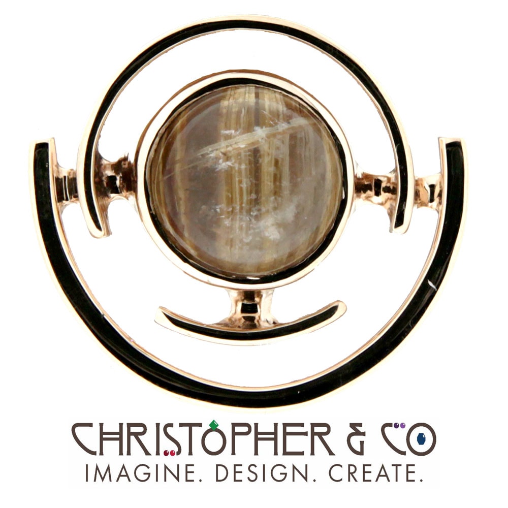 One pair of 14 karat yellow gold cuff links designed and handcrafted by Christopher M. Jupp. These cufflinks are set with one pair of Rutilated Quartz that have a total weight of 9.23 carats.