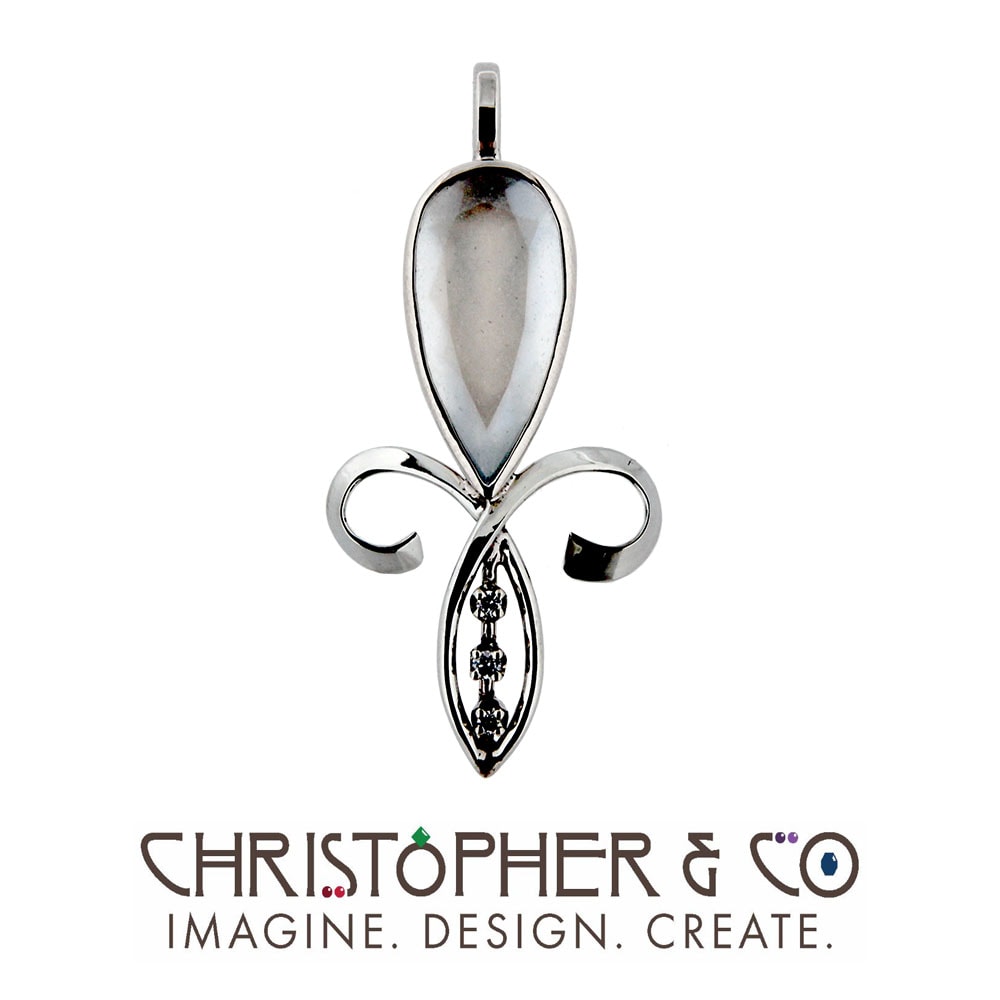 One 14 karat white gold pendant designed and handcrafted by Christopher M. Jupp. The pendant is set with one 4.11 carat moonstone.