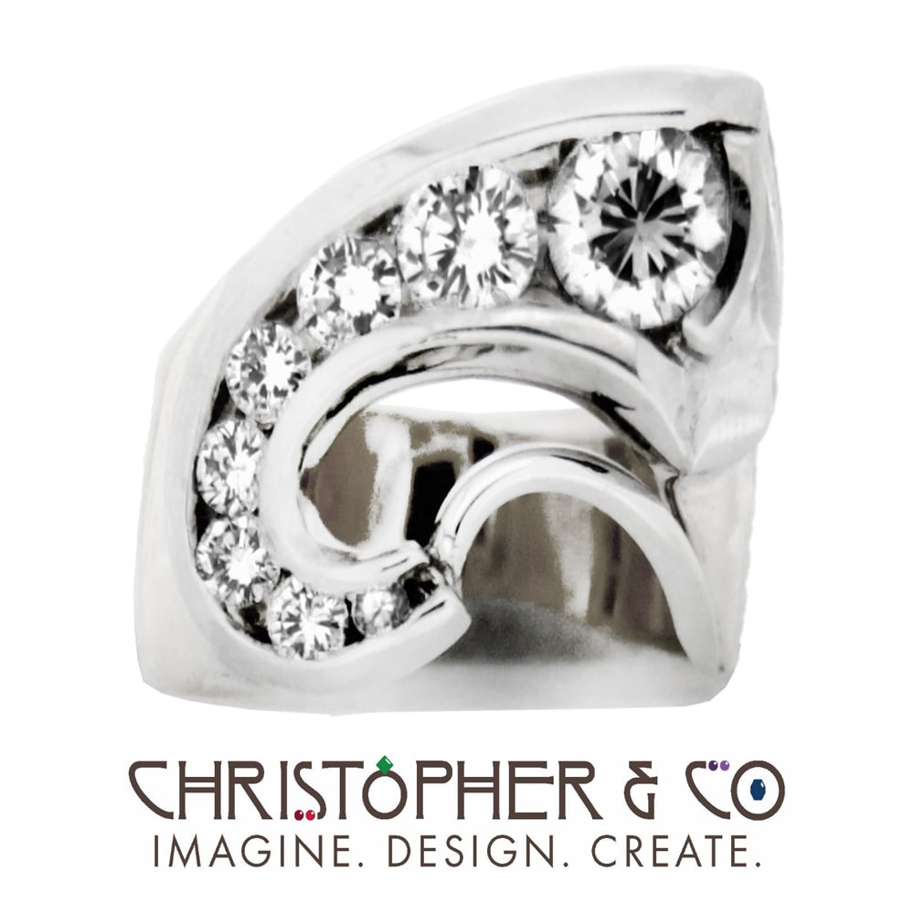 One 14 karat white gold ring designed and handcrafted by Christopher M. Jupp. The ring is set with one 0.50 carat diamond which is H in color and SI1 in clarity, one 0.25 carat diamond which is J in color and VS1 in clarity, and six diamonds which are G-H in color, VS1-SI1 in clarity and have a total weight of 0.32 carats.