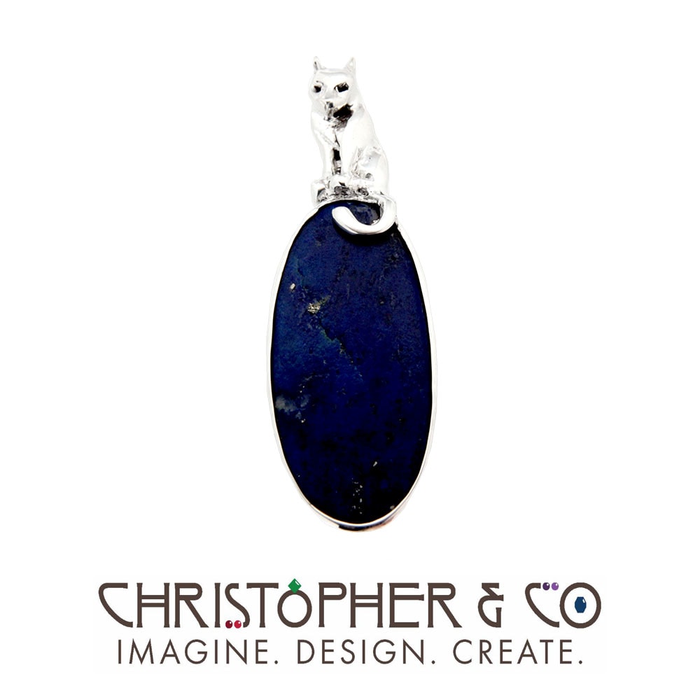 One sterling silver pendant designed and handcrafted by Christopher M. Jupp. The pendant is set with one lapis lazuli.