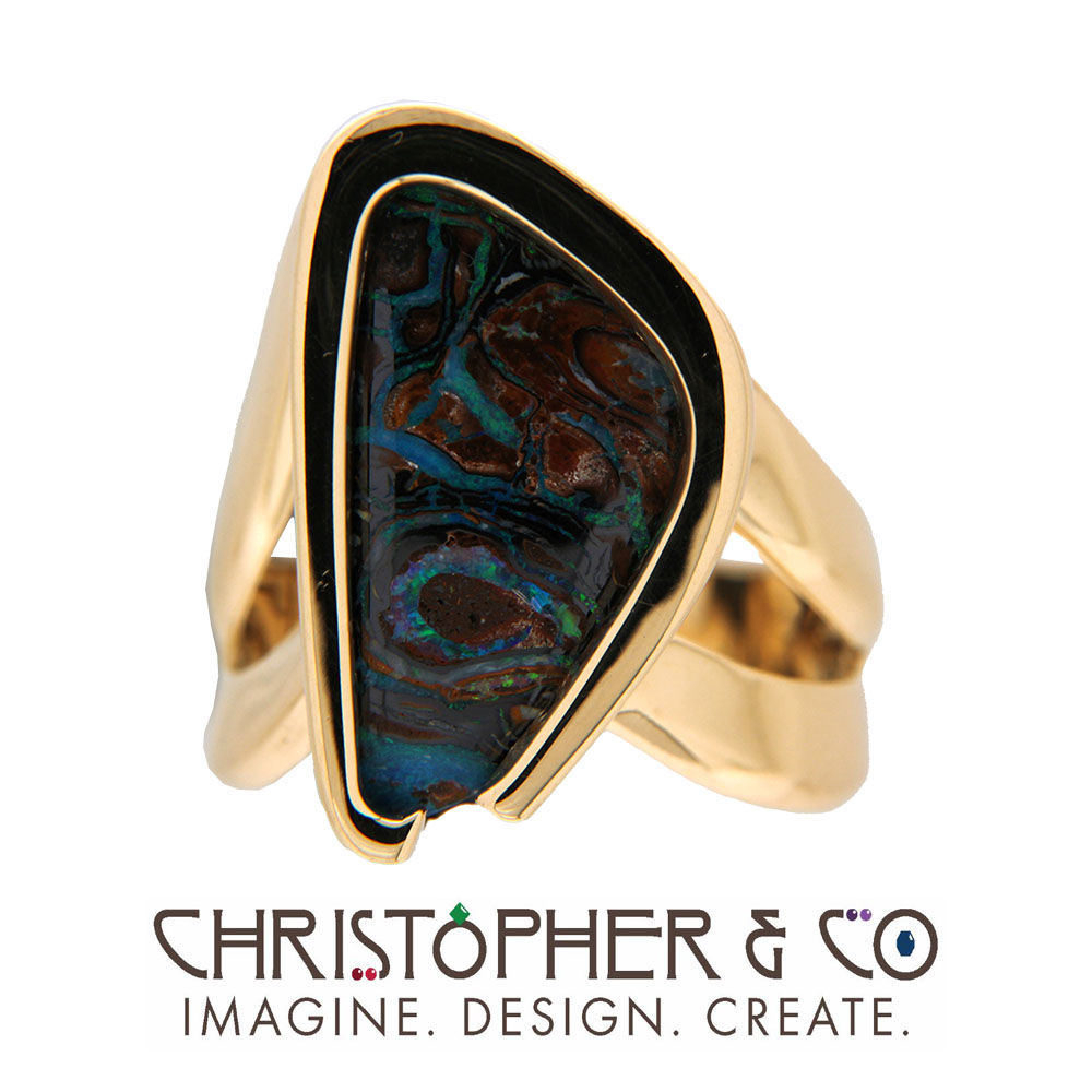 One 14 karat yellow gold ring designed by Christopher M. Jupp. The ring is set with on Koroit boulder opal.
